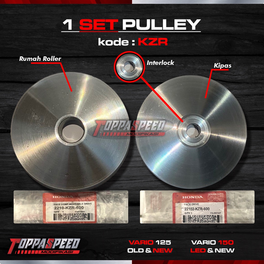 PULLEY VARIO CUSTOM 1 SET BUBUT + KEROK JALUR PART ORIGINAL PULI KODE (KZR) VARIO125 OLD/VARIO125 LED