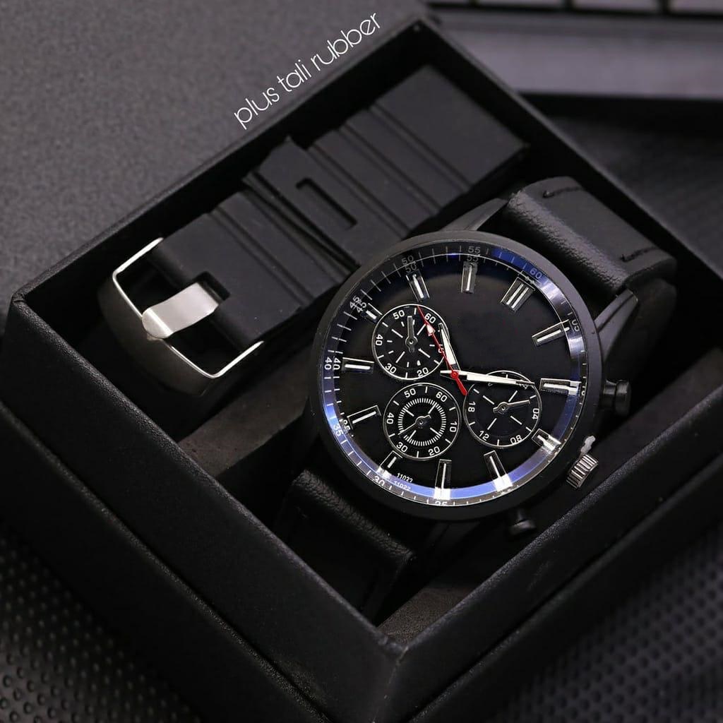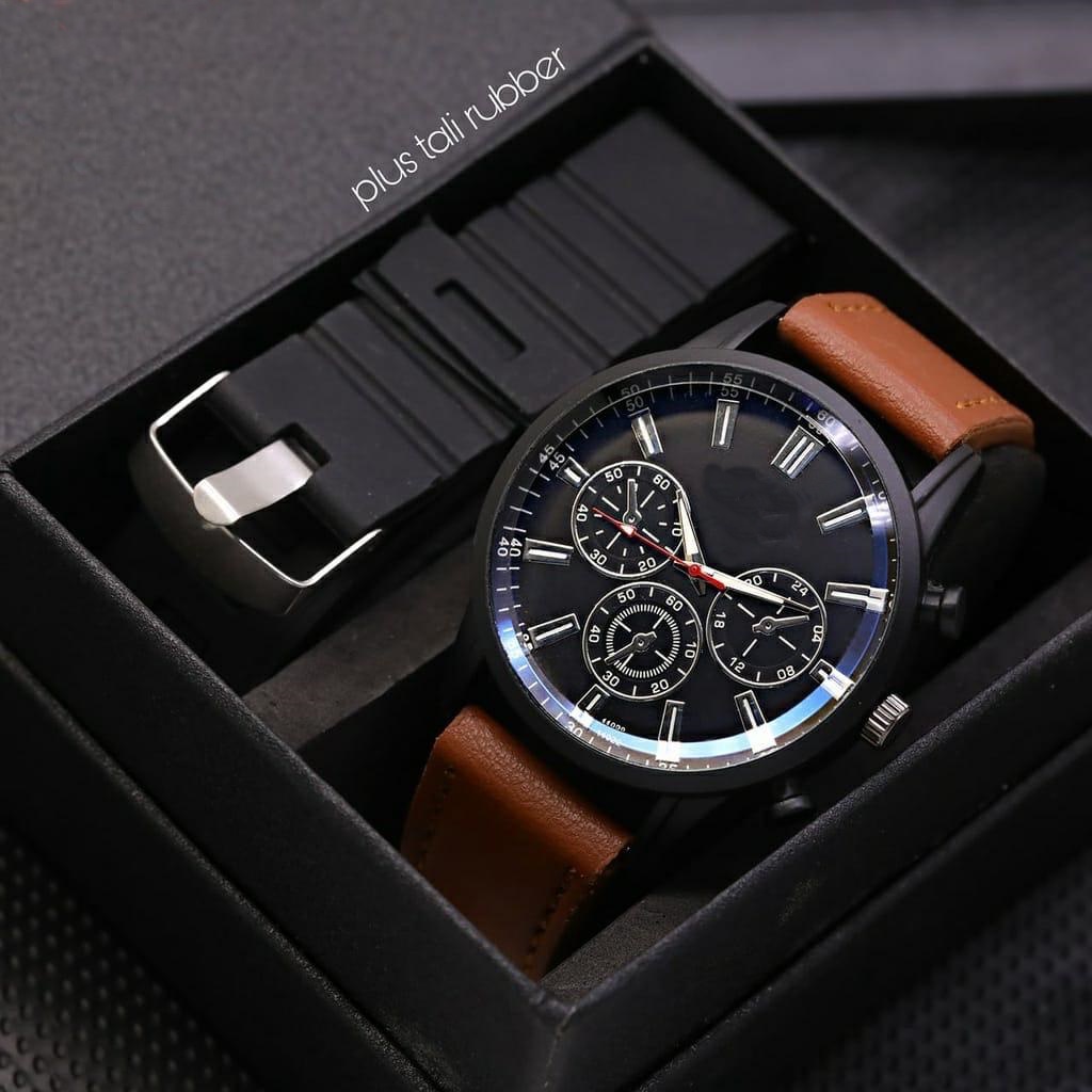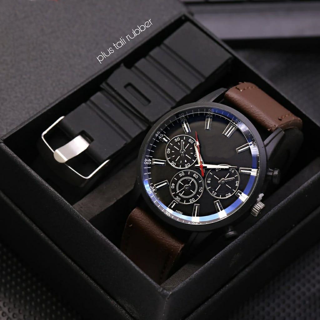 JAM TANGAN SWIS MADE PRIA / COWOK KULIT FASHION 7878LS CHRONO VARIASI FREE 1 TALI RUBBER & BOX