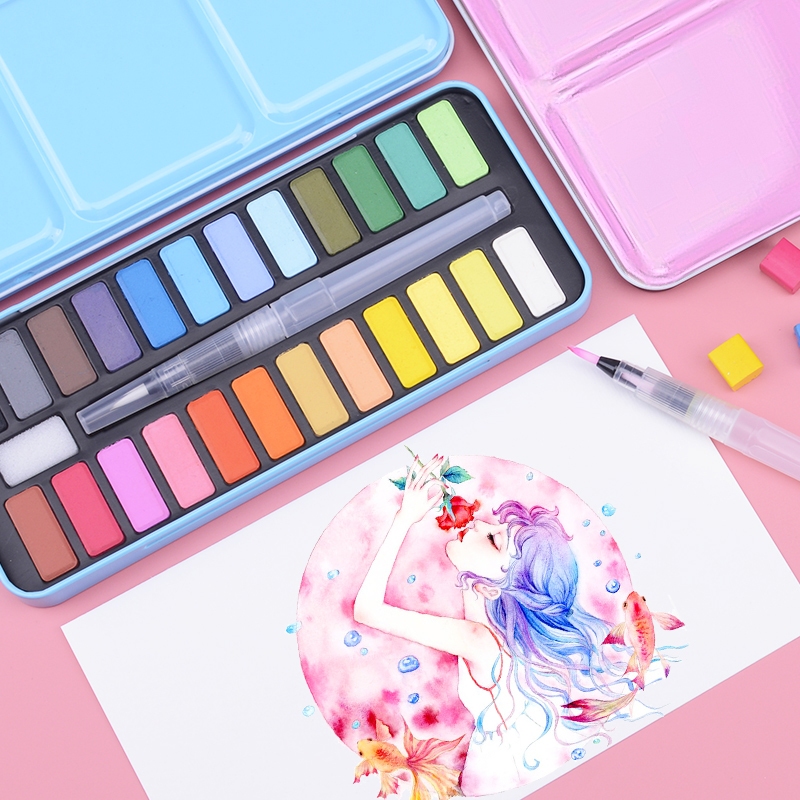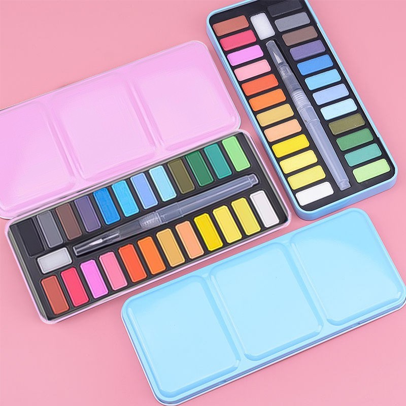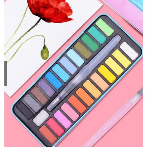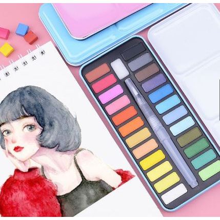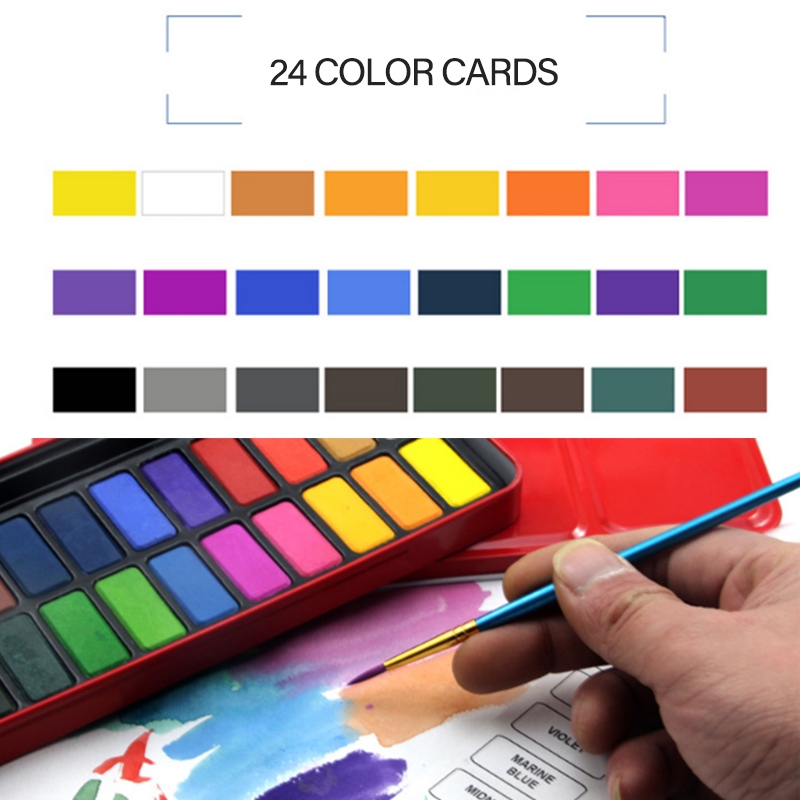 PROMO KAIKKI CAT AIR WATERCOLOR SET - 24 WARNA WATER COLOR ALAT CAT AIR LUKIS SET (TERMASUK KUAS DAN KERTAS GAMBAR)