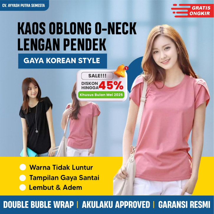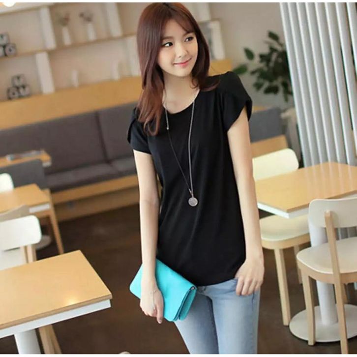 Kaos Wanita O-Neck Lengan Pendek – Oblong, Korean Style, Casual & Santai, Bahan Spandex Lembut