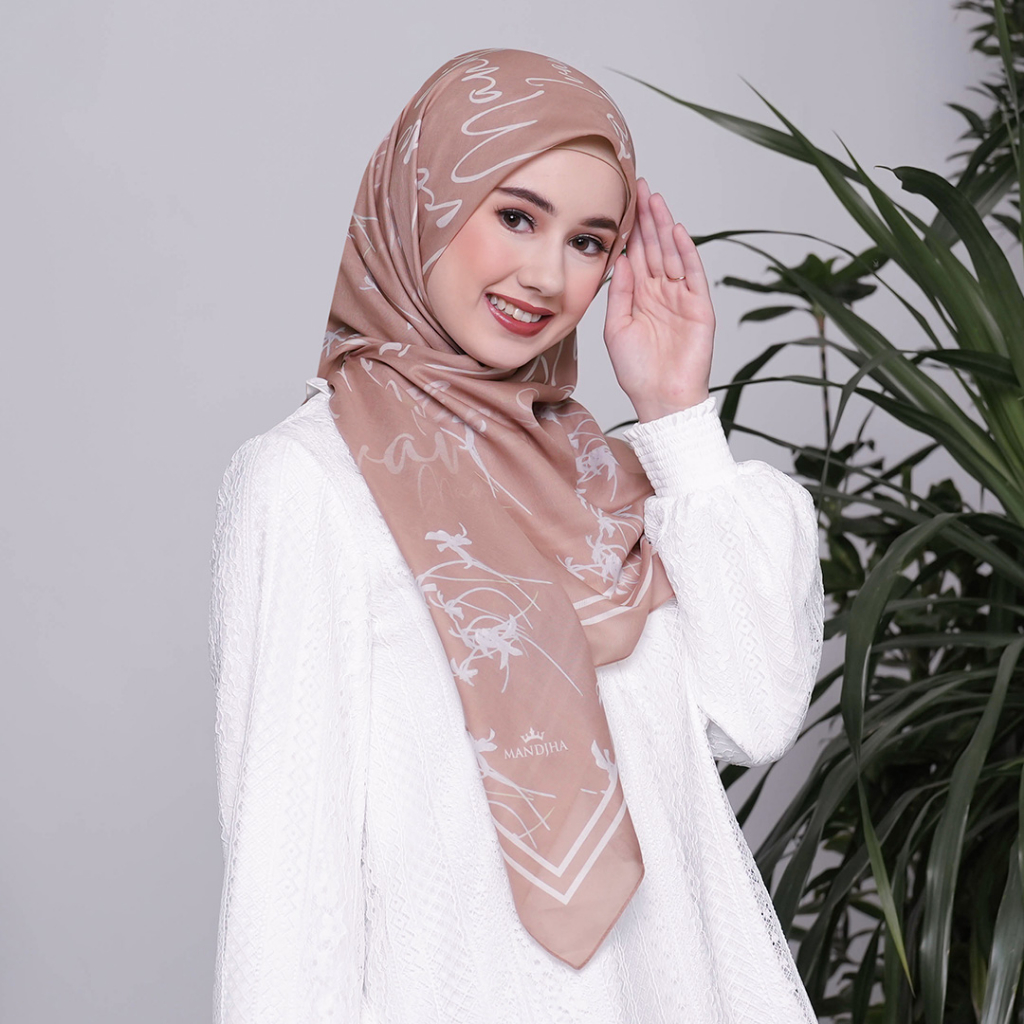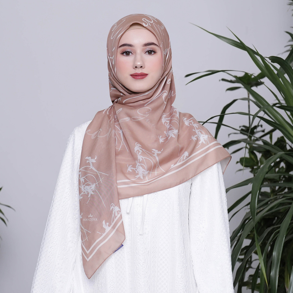 PROMO MANDJHA FLORAL FANCY BROWN SCARF BY IVAN GUNAWAN - JILBAB HIJAB SEGI EMPAT ORIGINAL MANDJHA
