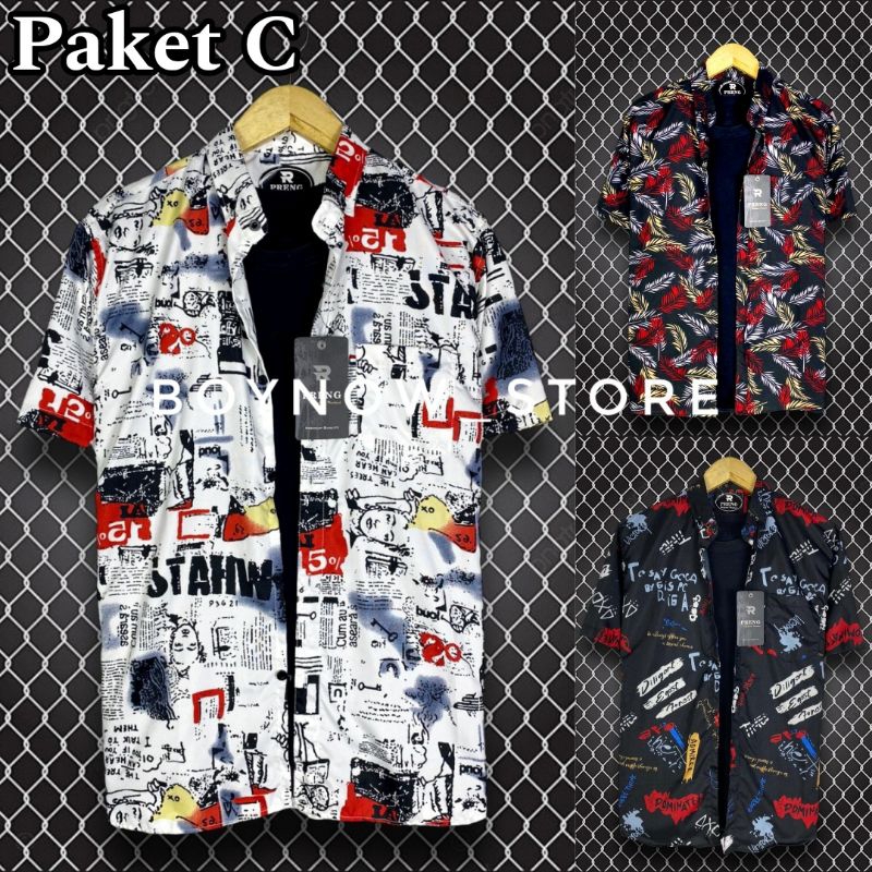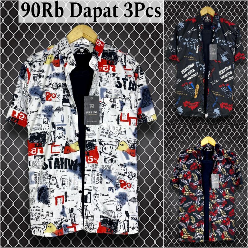PROMO PAKET HEMAT 100.000 DAPET 3PCS KEMEJA MOTIF PRIA LENGAN PENDEK MASA KINI BEST SELLER