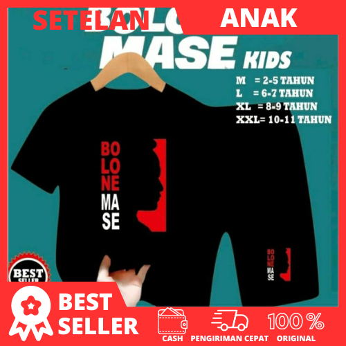 KAOS SETELAN ANAK BOLONE MASE LENGAN PENDEK UNISEX / ATASAN BAJU SETELAN ANAK BOLONE MASE KAOS ANAKBOLONE MAS HITAM