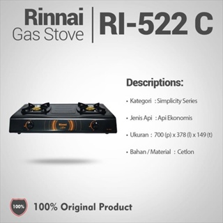 [Mall] Kompor Gas 2 Tungku Rinnai RI - 522C Stainless Original Official Store