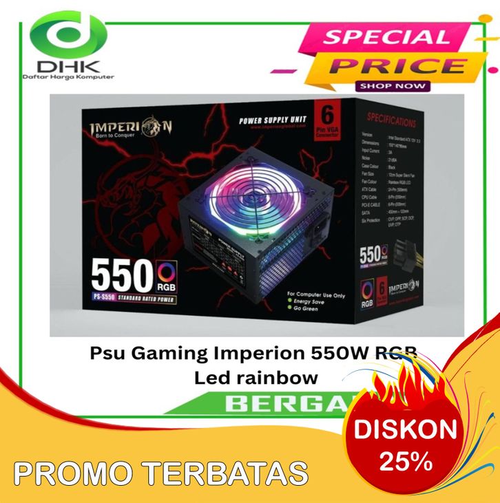 PSU GAMING IMPERION 550W RGB LED RAINBOW POWER SUPPLY
