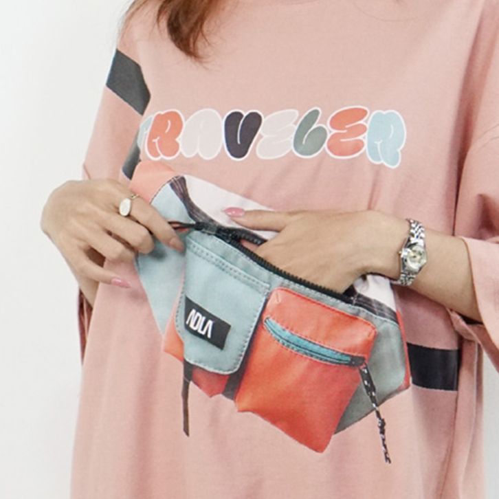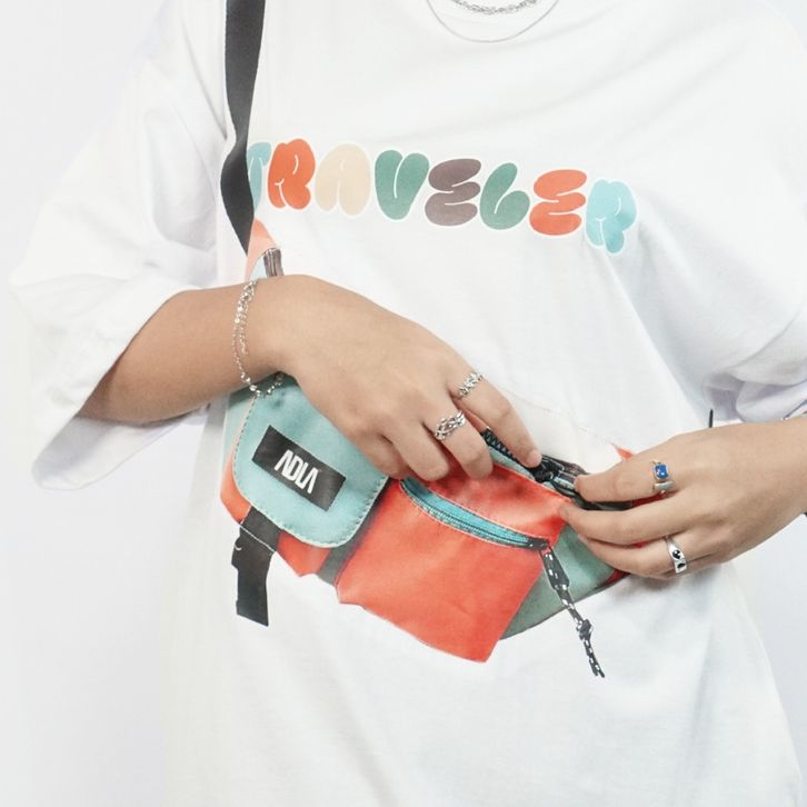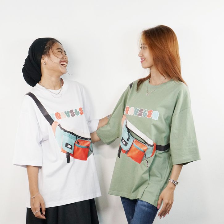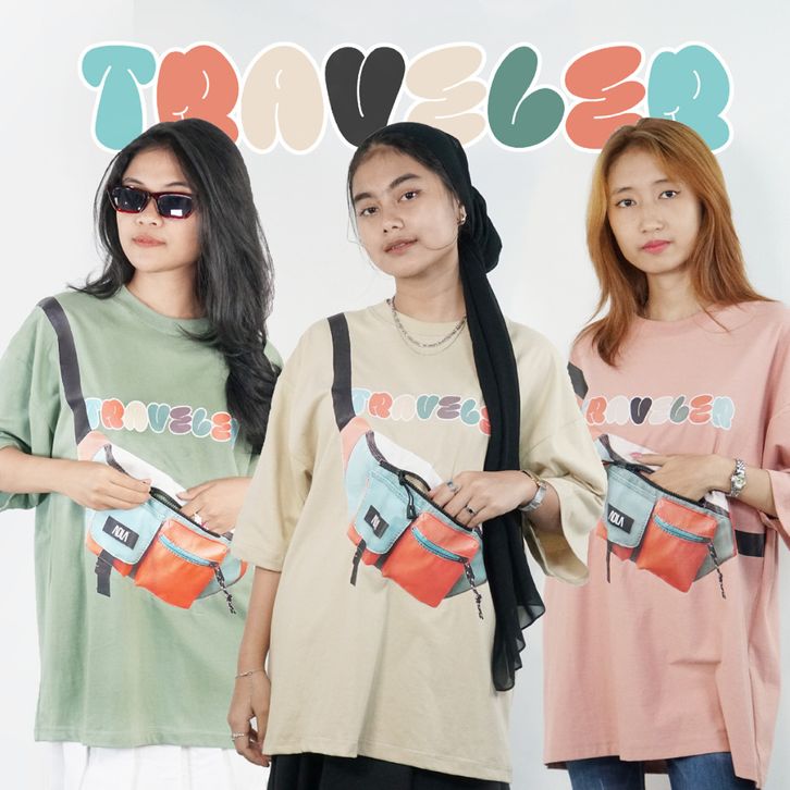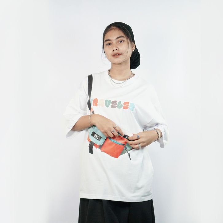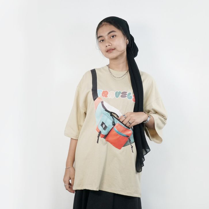 KAOS OVERSIZE GRAPHIC TRAVELER 3D WAISTBAG POCKET TSHIRT UNISEX PRIA WANITA JAPAN OVERSIZE BAJU KANTONG 3D KAOS TAS INTR