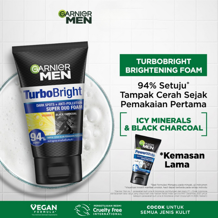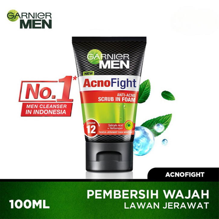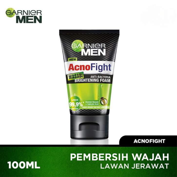 Garnier Men Series AcnoFight Turbolight Power White Oil Control Whitening Wasabi Matcha Foam Scrub Sabun Pembersih