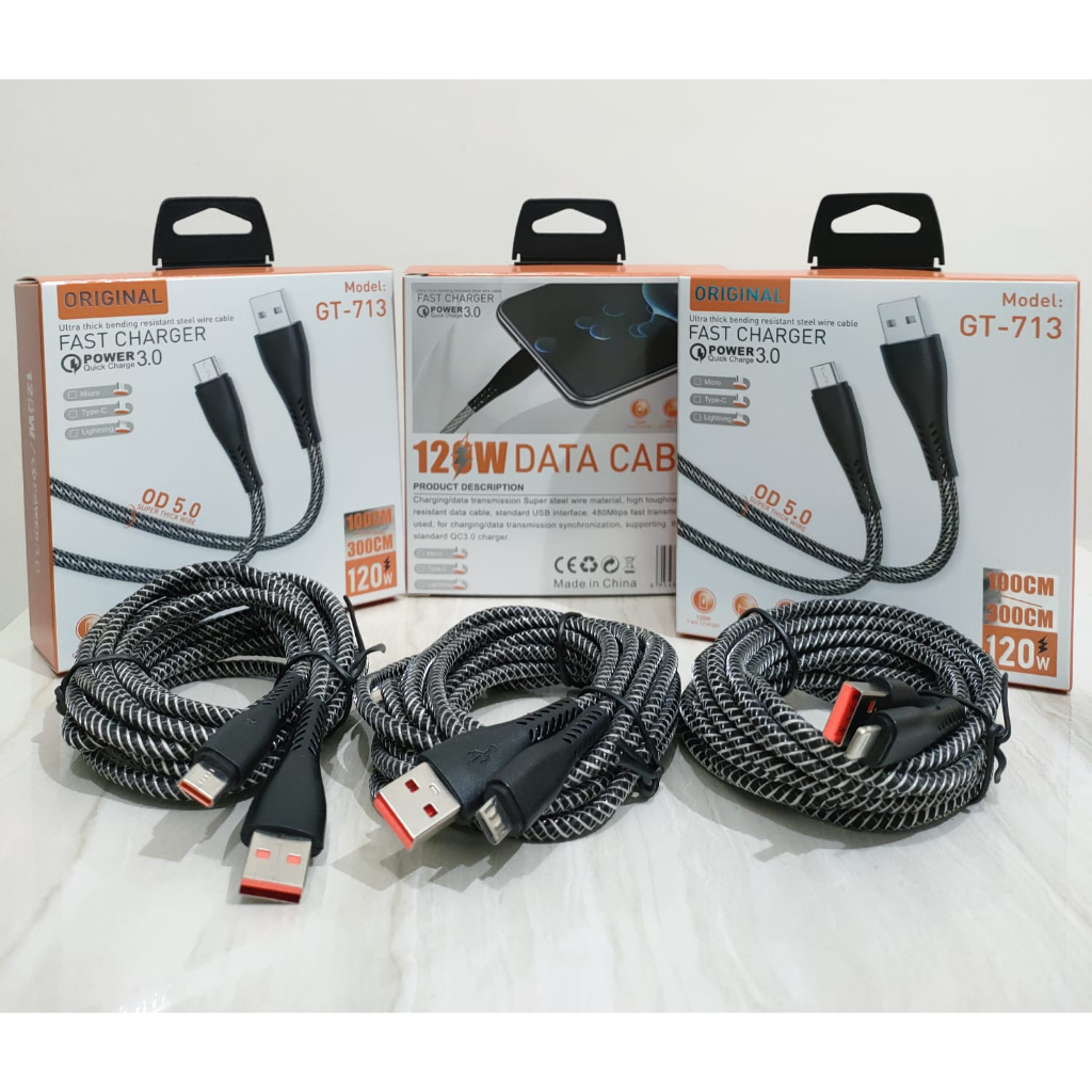 Kabel Data Fast Charging 3M Steel Wire 120W GT-713