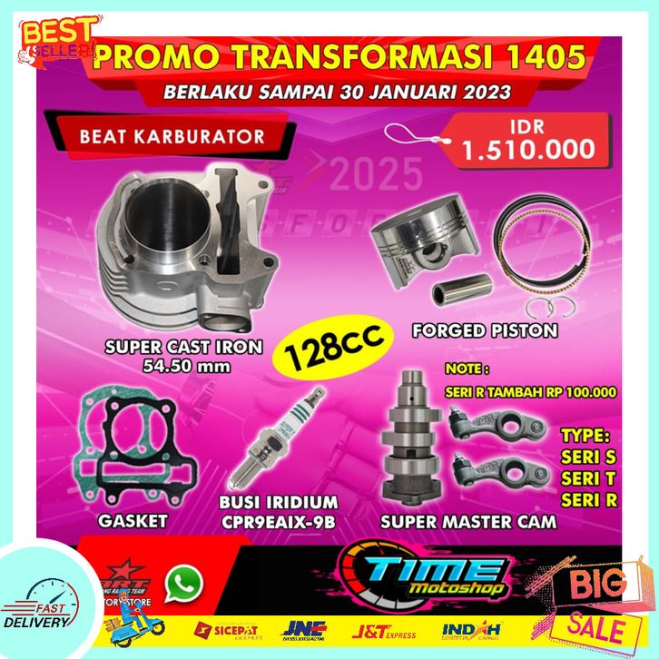 Paket Bore Up Beat Karbu PAKET BORE UP BEAT KARBU KARBURATOR 128cc BLOK SEHER NOKEN AS RRA PISTON 5450 Paket Bore Up