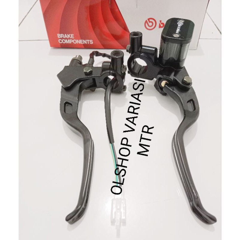 handle master rem sepasang model tabung kotak+ selang rem depan 95cm serat hitam semua motor