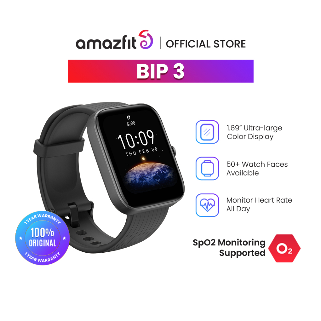 AMAZFIT OFFICIAL BIP 3 SMARTWATCH 1.69" ULTRA-LARGE COLOR DISPLAY 50+ WATCH FACES BLOOD-OXYGEN MEASUREMENT