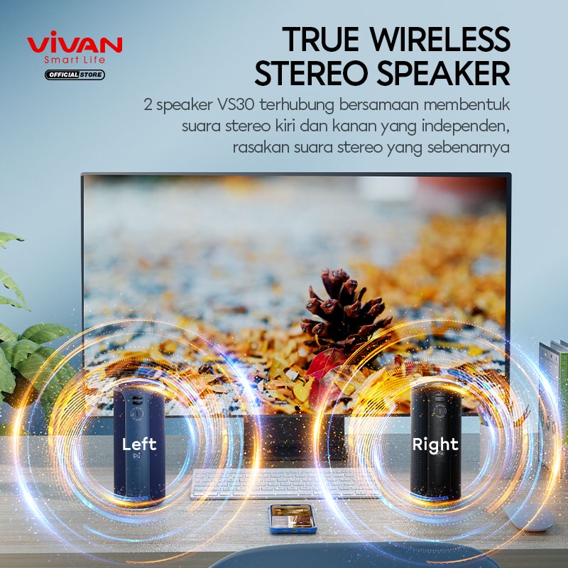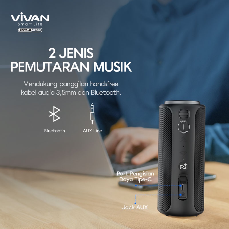 [TERLARIS] SOUND SALON VIVAN BLUETOOTH SPEAKER VS30 PORTABLE WATERPROOF IPX7 SUBWOOFER 20W 15 JAM PLAYTIME GARANSI