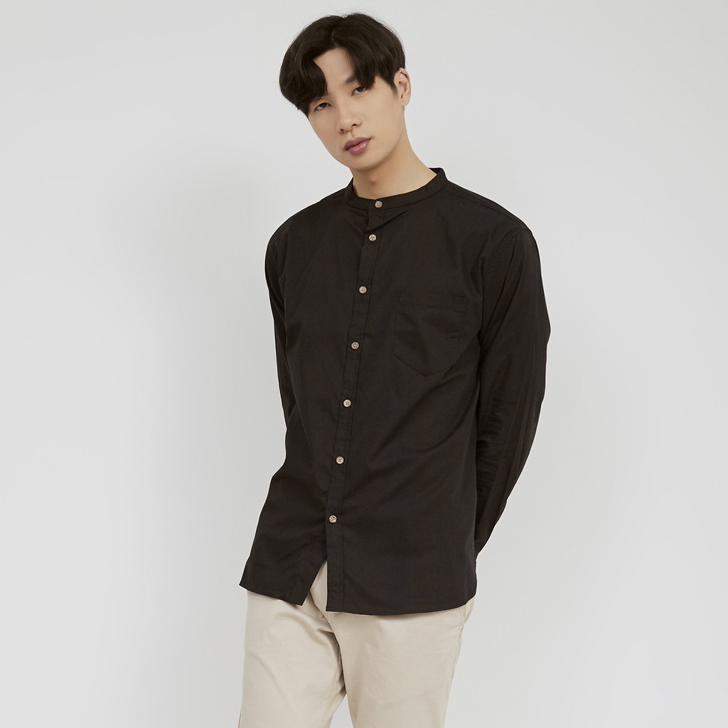M231 KEMEJA PRIA SHANGHAI POLOS OVERSIZED PANJANG HITAM 1985E