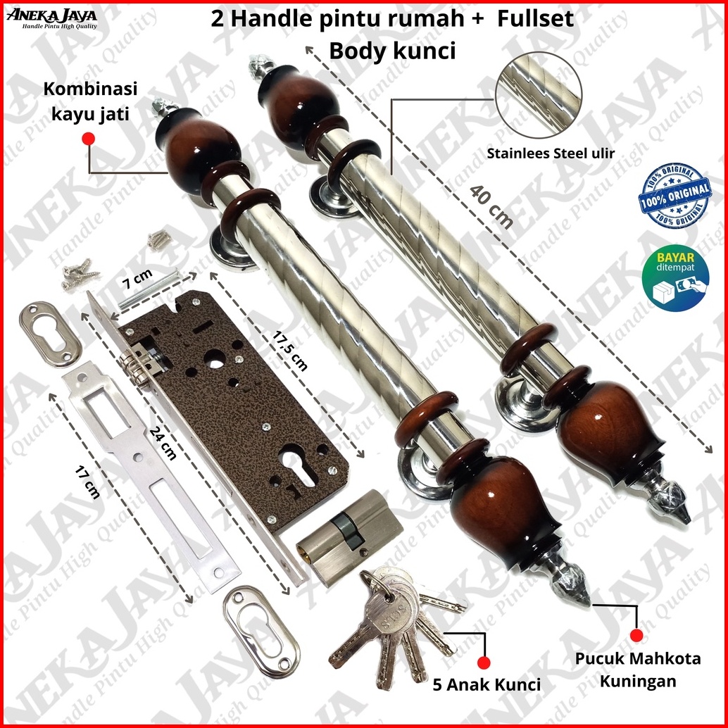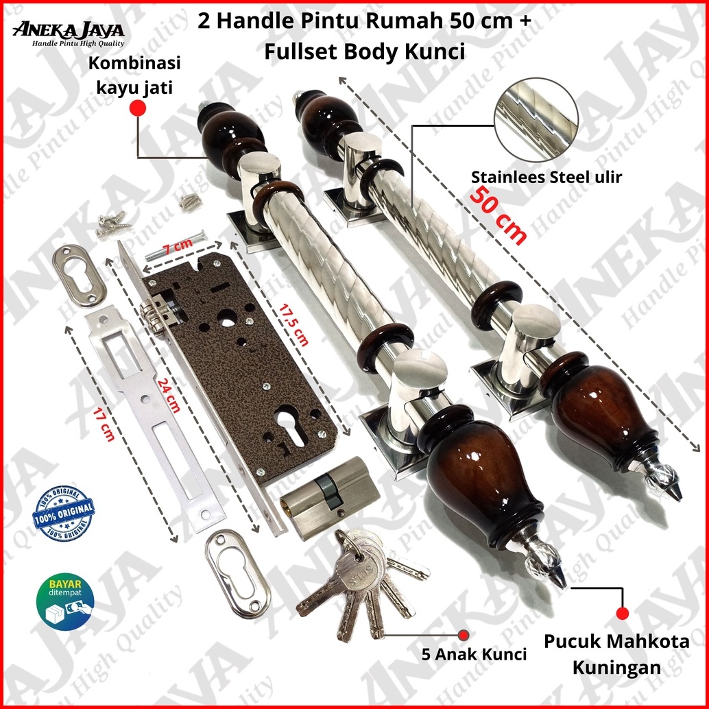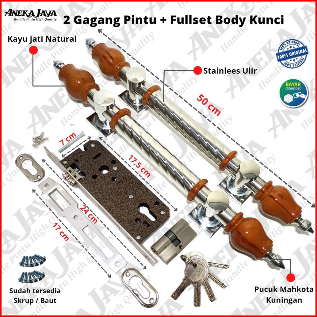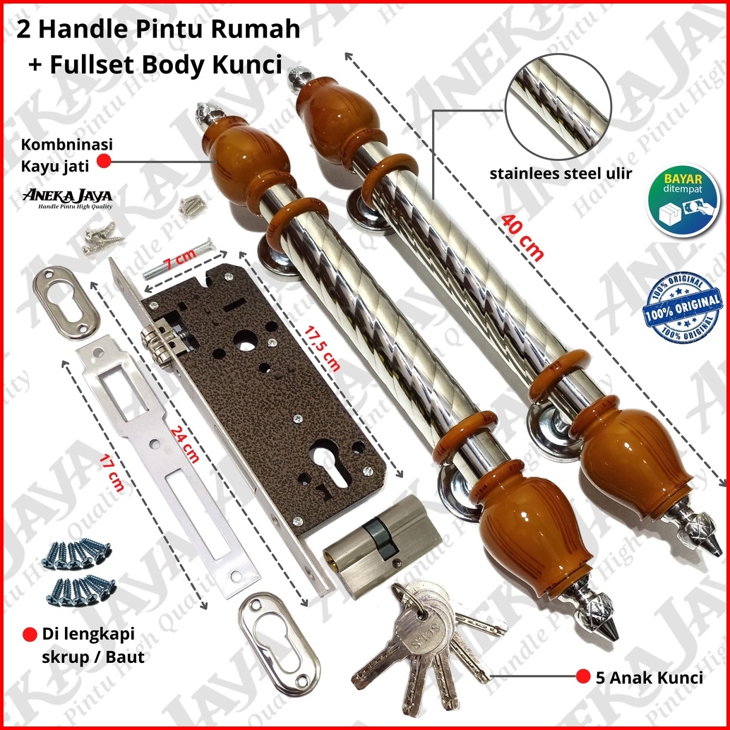 Satu Set Kunci 2 Gagang Pintu Rumah 50 Cm Gagang Pintu Rumah Pegangan Pintu Set Stainlees Kayu