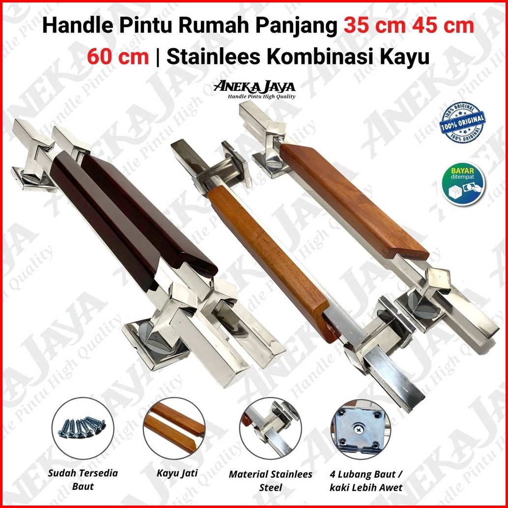Handle Pintu Rumah Panjang 60 Cm 45 Cm 35 Cm Tarikan Pintu Rumah Gagang Pintu Rumah Stainless Kombinasi Kayu