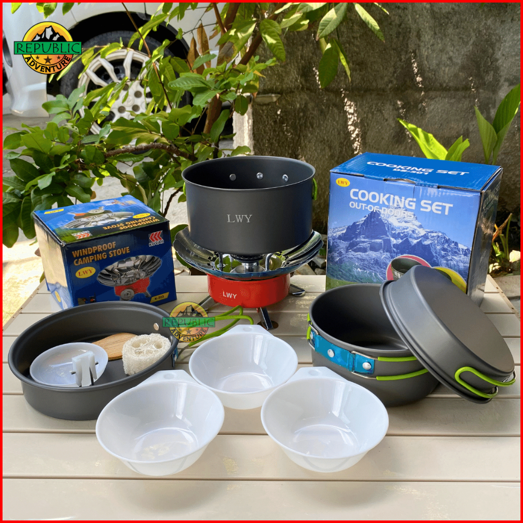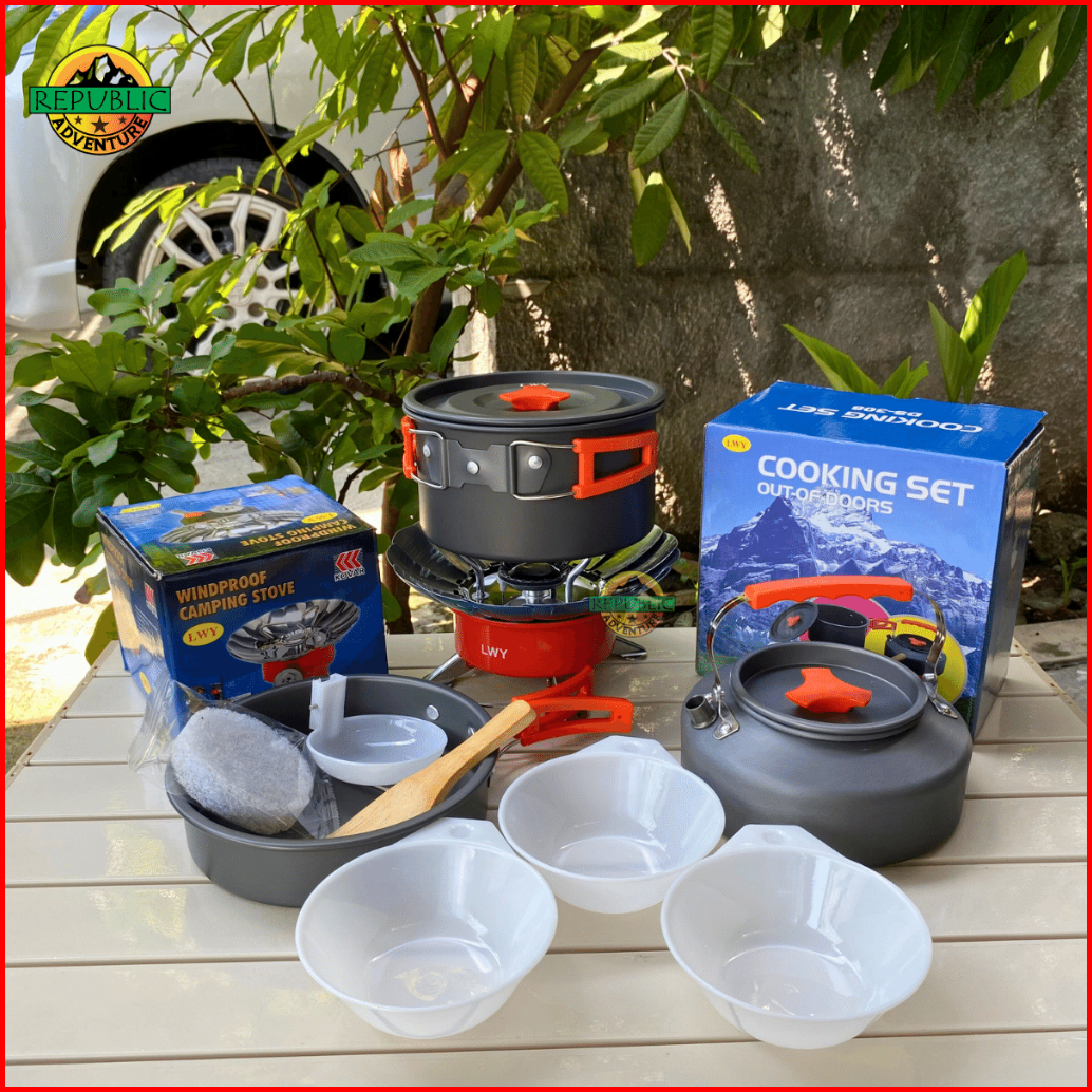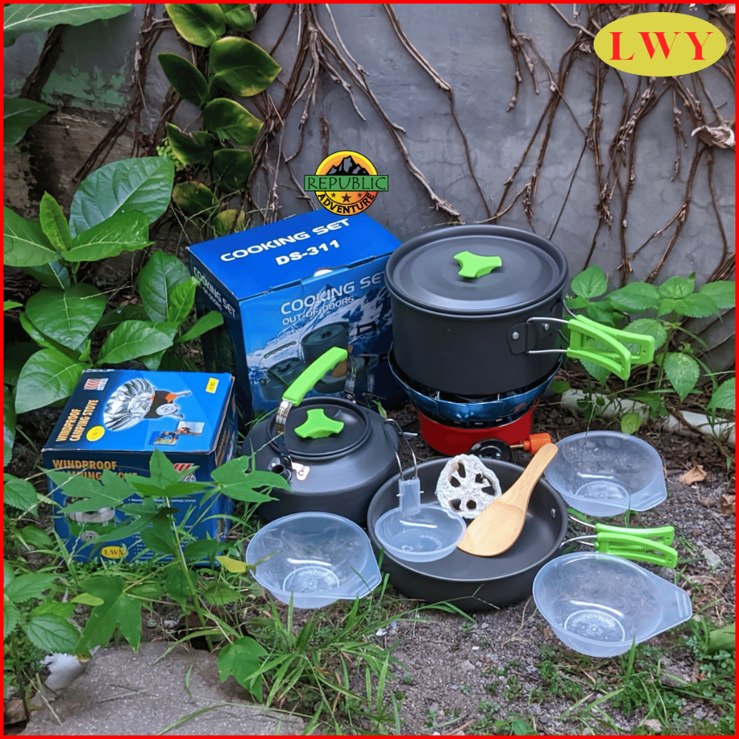 Paket Alat Masak Camping Dan Kompor Portable Cooking Set Camping Ds 308 Kompor Windproof Nesting Ds 311 Kompor Kotak