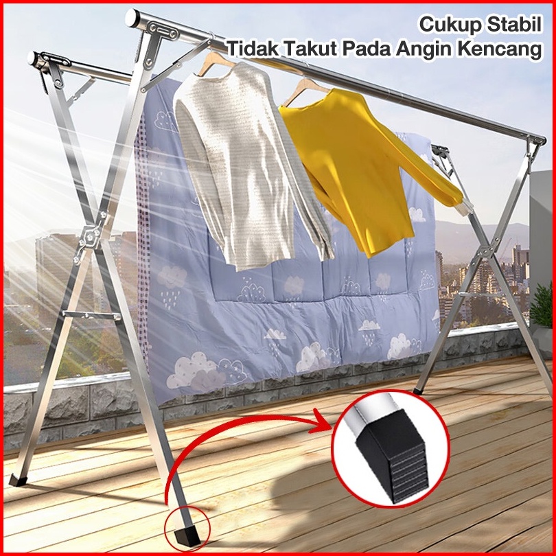 Masterhome Jemuran Baju Lipat Stainless Steel Jemuran Pakaian Anti Karat Kuat Tempat Jemuran Baju Portable Stainless Gan
