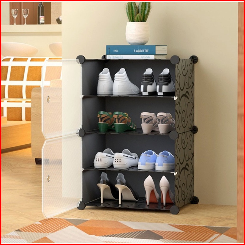 Rak Sepatu Portable 2 Kolom 4 Kotak Sepatu Tebal Tertutup Anti Debu Shoe Rack Serbaguna