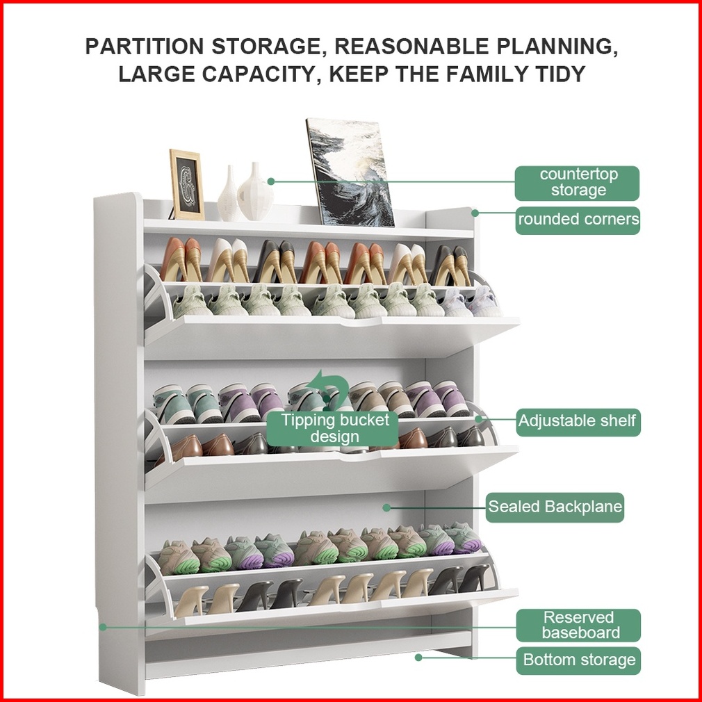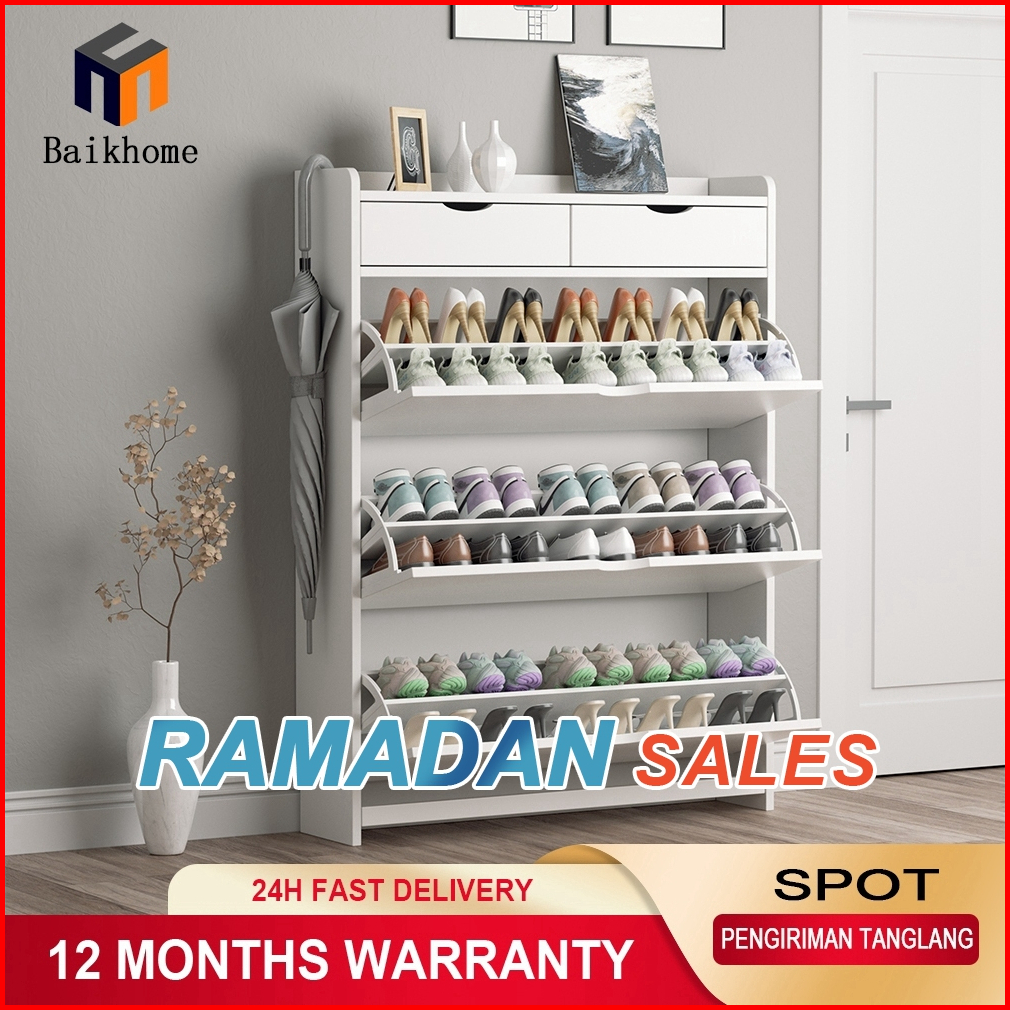 Baikhome Lemari Sepatu Shoe Cabinet Rack Multilayer Rak Sepatu Tertutup Simple Shoe Cabinet Kabinet Kasut Kayu Mewah Kab