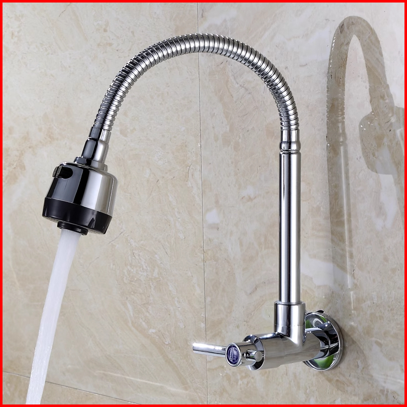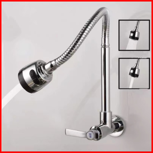 Sun Kran Air Angsa Fleksibel Wastafel Tembok Sink Stainless Kuningan Cuci Piring Minimalis Premium Keran