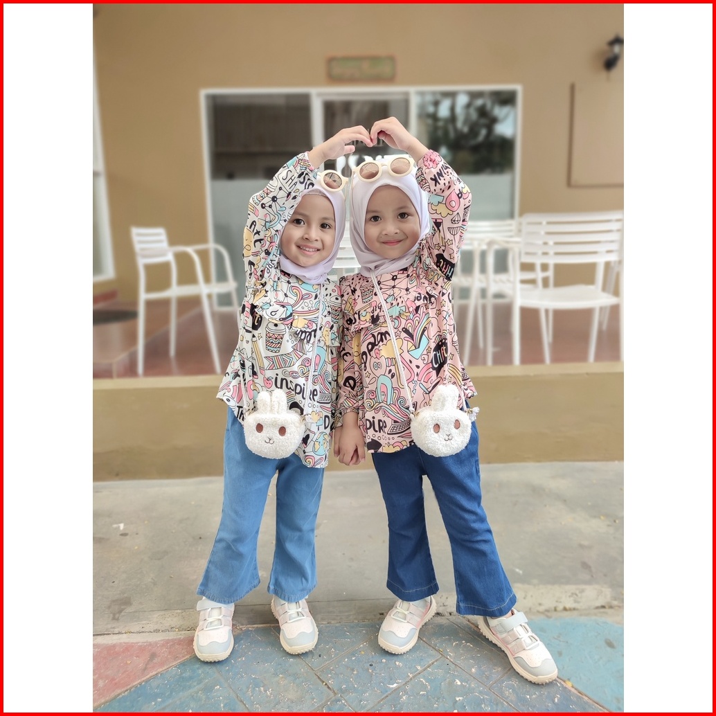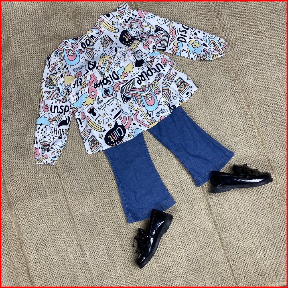 Zahra - Setelan Anak Perempuan Ribie Bahan Jeans Pakaian Anak Terlaris Umur 1-7 Tahun