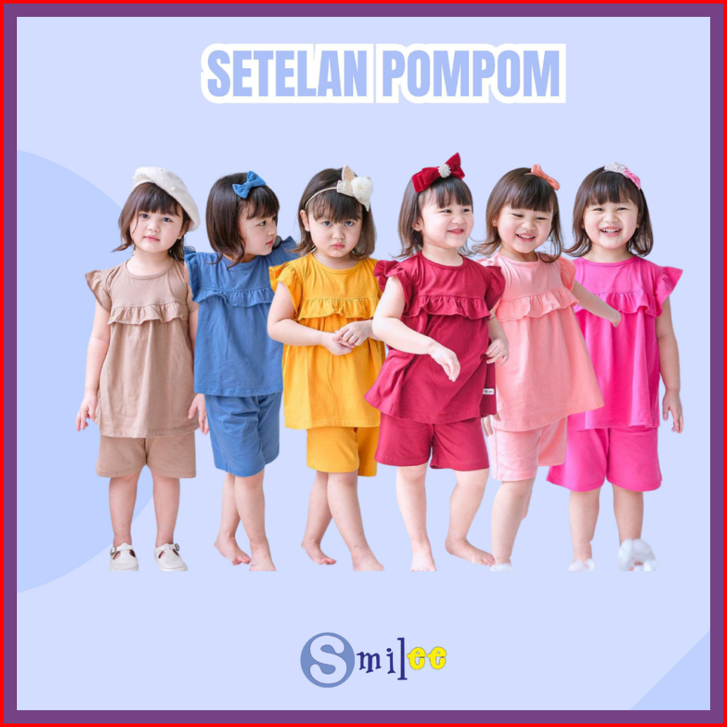 Setelan Anak Kaos Smilee Pompom Mix Warna Size 1-5tahun