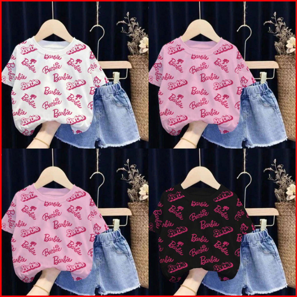 Setelan Anak 1-5 Tahun Motif Barbie Bahan Atasan Kaos Dan Celana Jeans