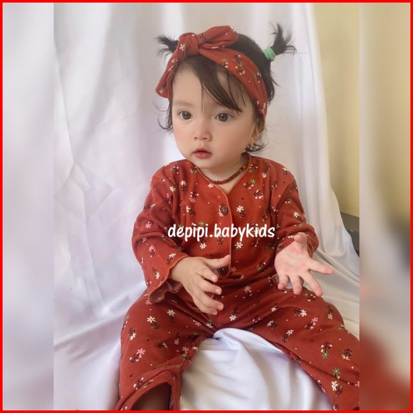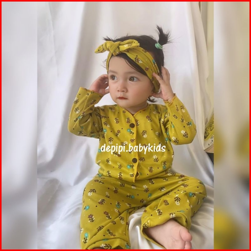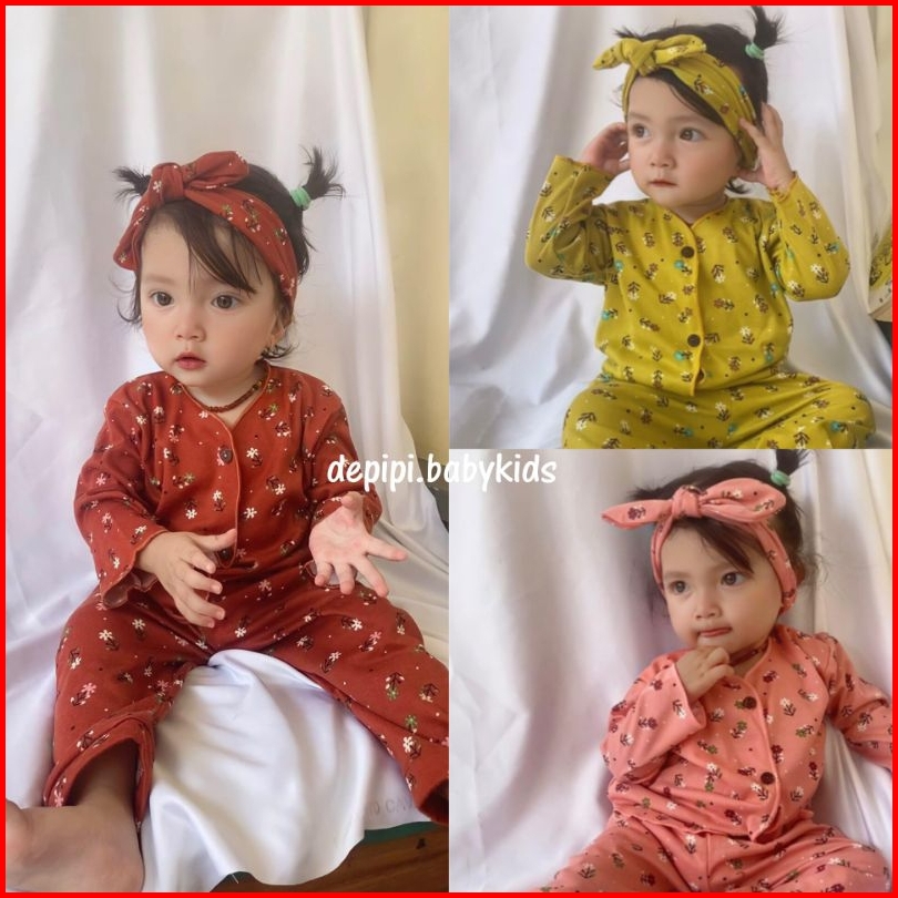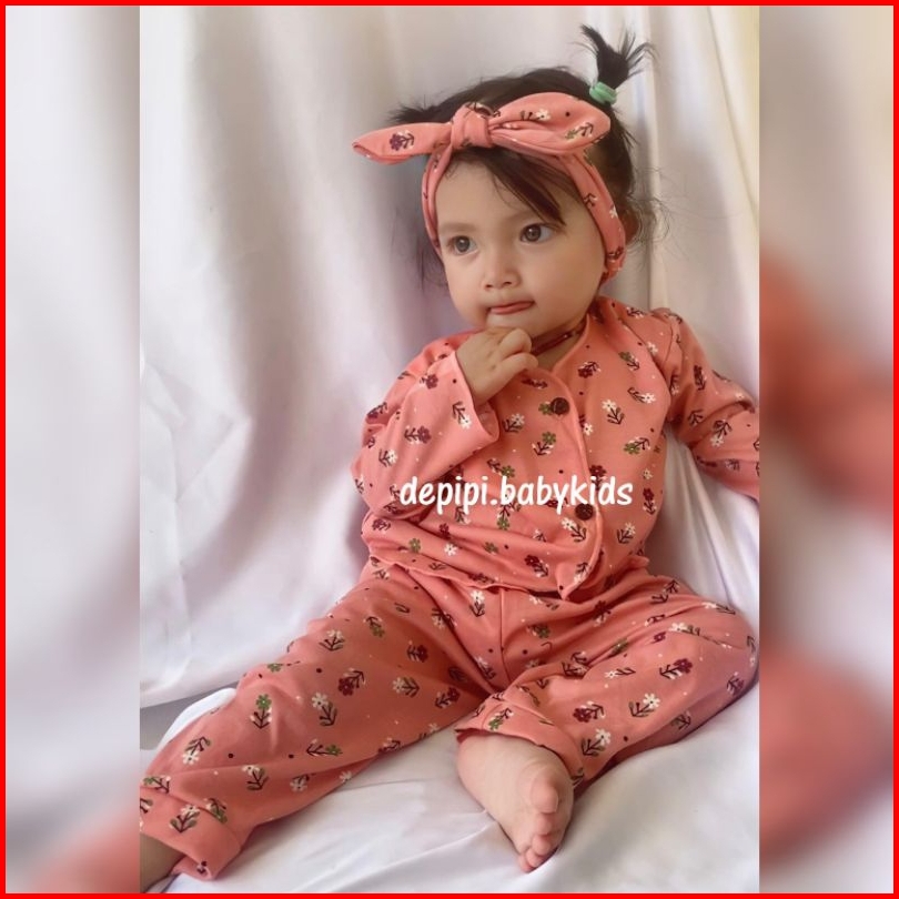 Piyama Anak Motif Bunga Free Bandana Isi 3 Set Pink Bata Lime