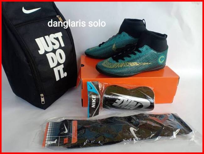 Promopaket Komplit 4 Sepatu Futsal Nike Tas Deker Kaos Kaki Joos