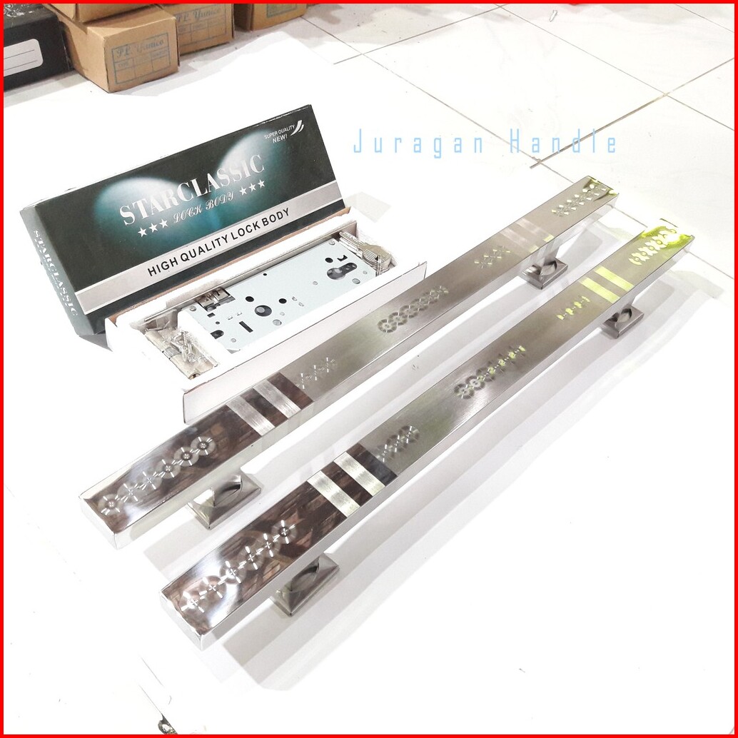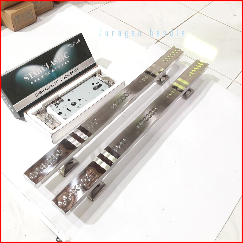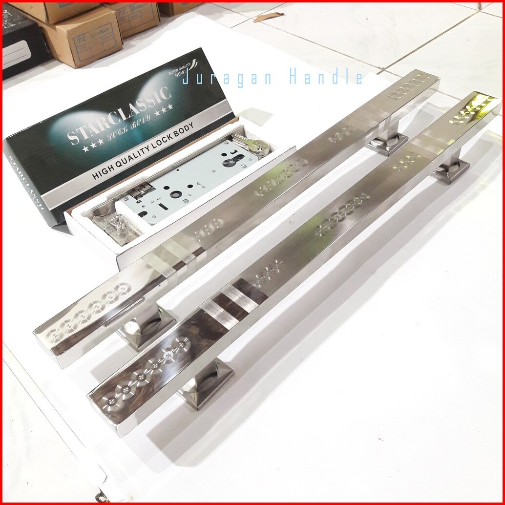 Promo Paket Handle Pintu Rumah 60 Cm Dan Body Kunci Gagang Tarikan Pintu Minimalis