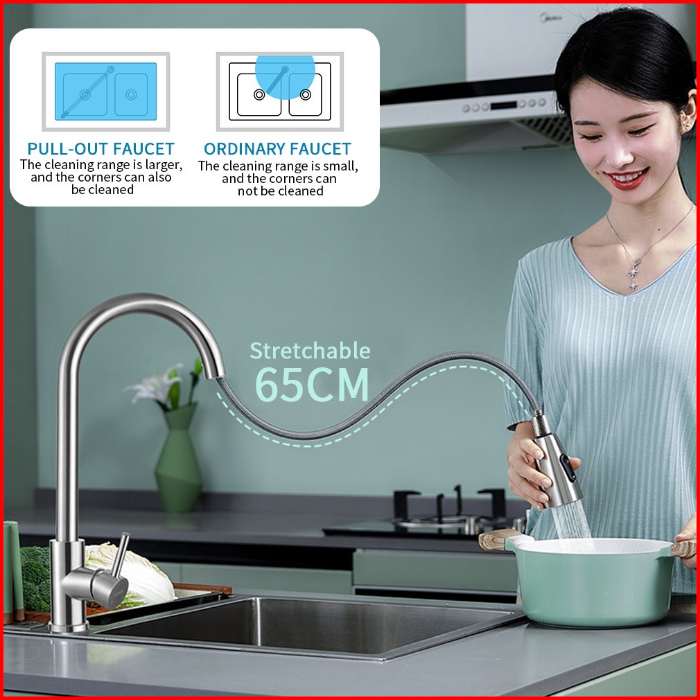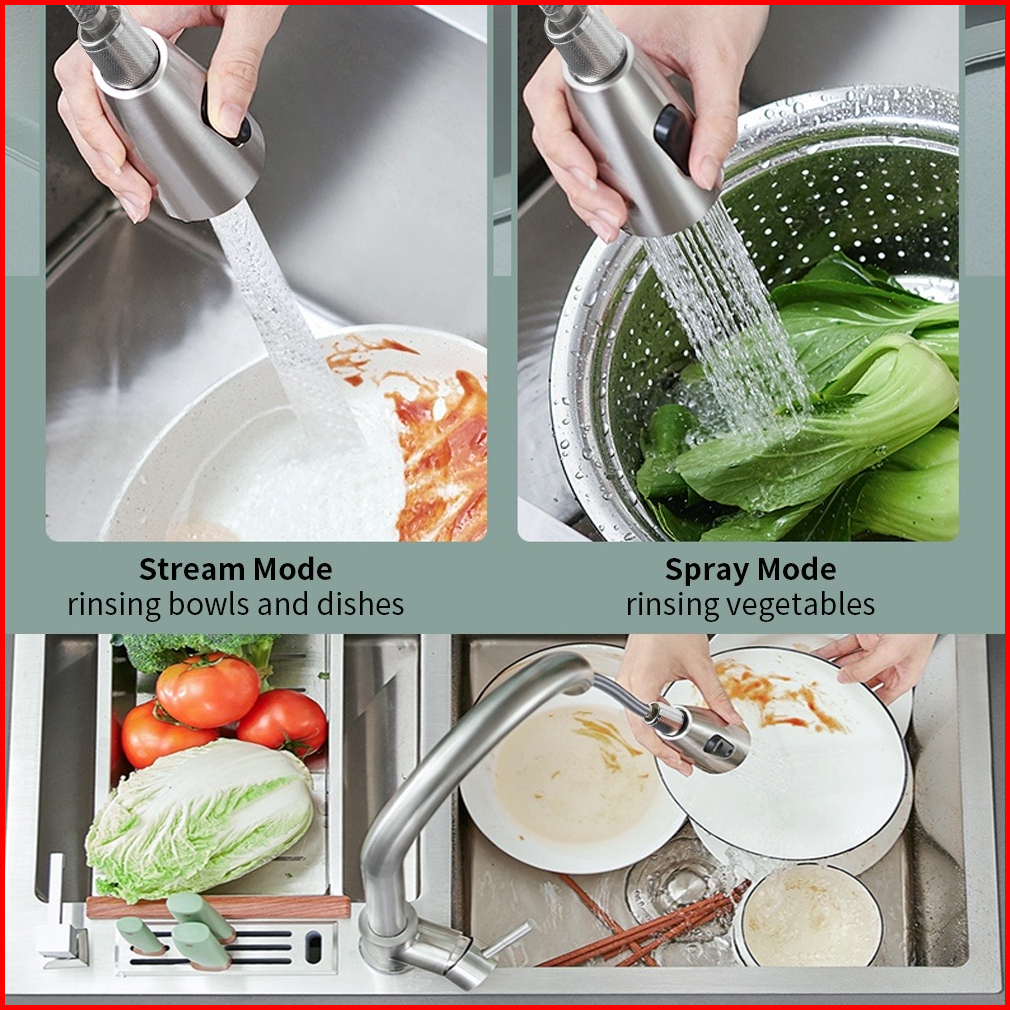 Sus304 Kran Sink Tarik Keran Cuci Piring Fleksibel Stainless Faucet Sprayer Kran Cuci Piring Kitchen Sink Kran Air Cuci