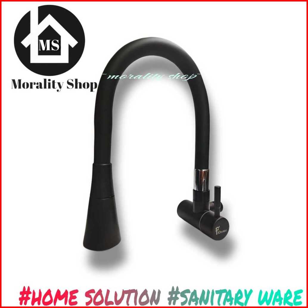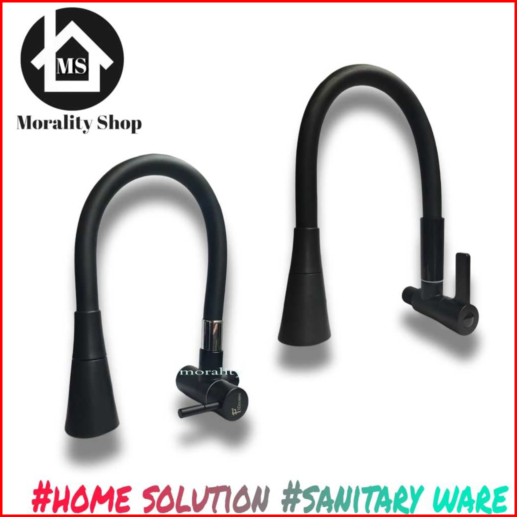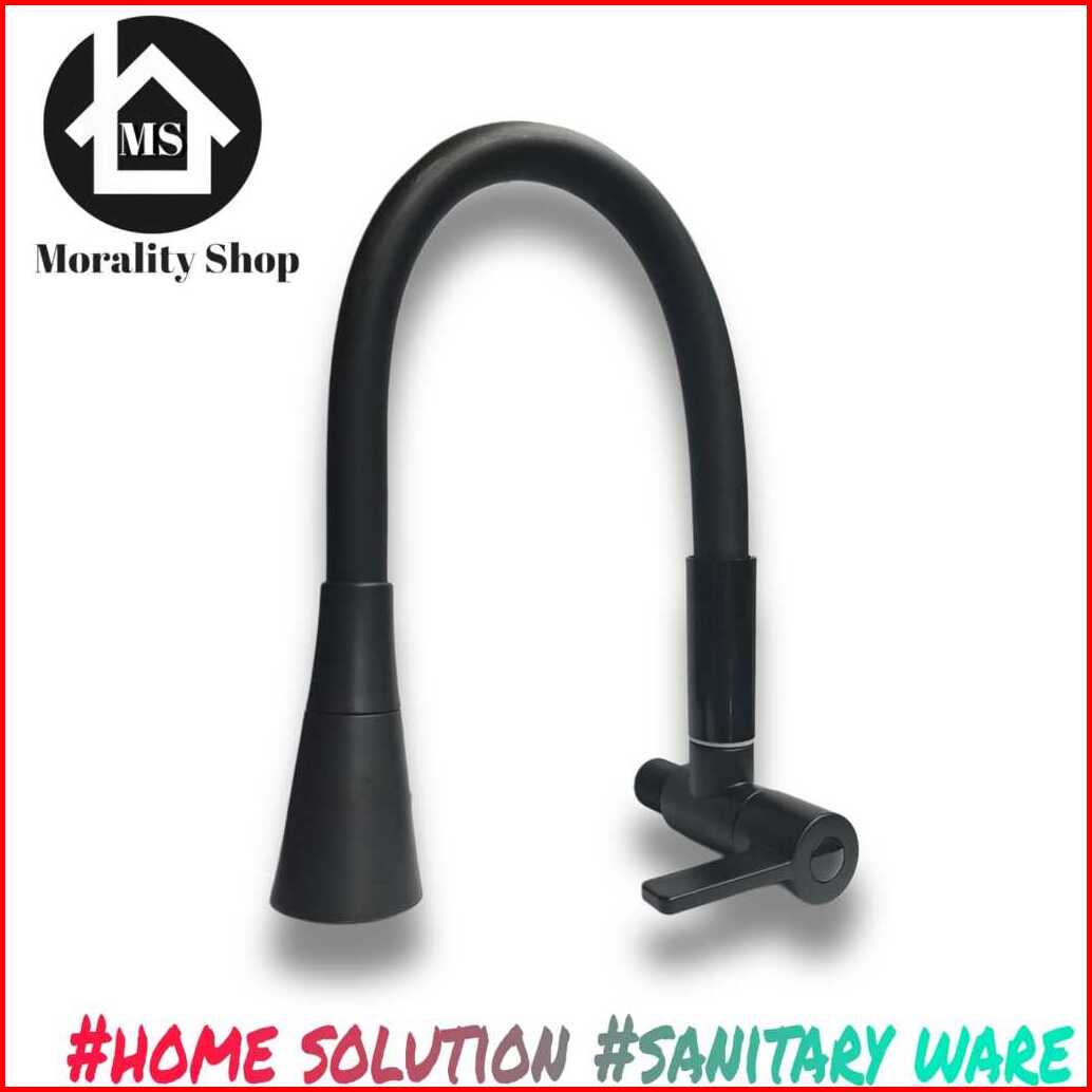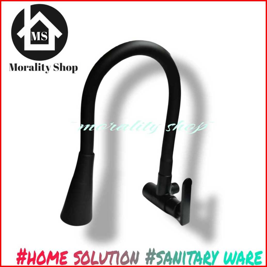 Kran Angsa Cuci Piring Tembok Fleksibel Hitam 37a Keran Air Dapur Stainless Kepala Terompet Murah