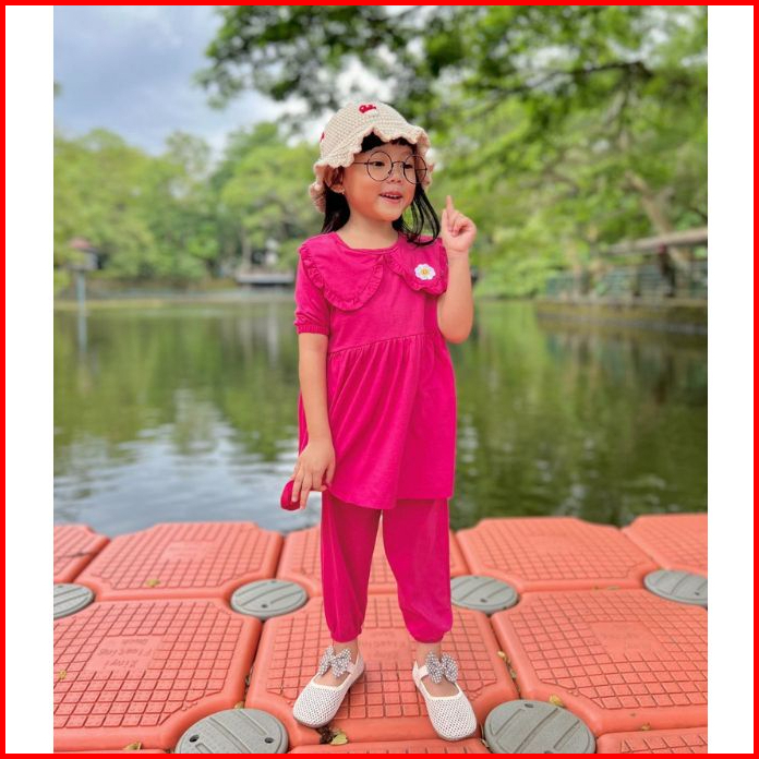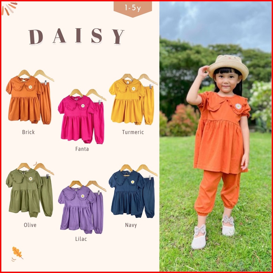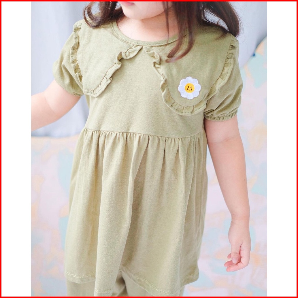 Lucuna Daisy Setelan Anak Dress Anak Perempuan Sage Size 1-5 Tahun