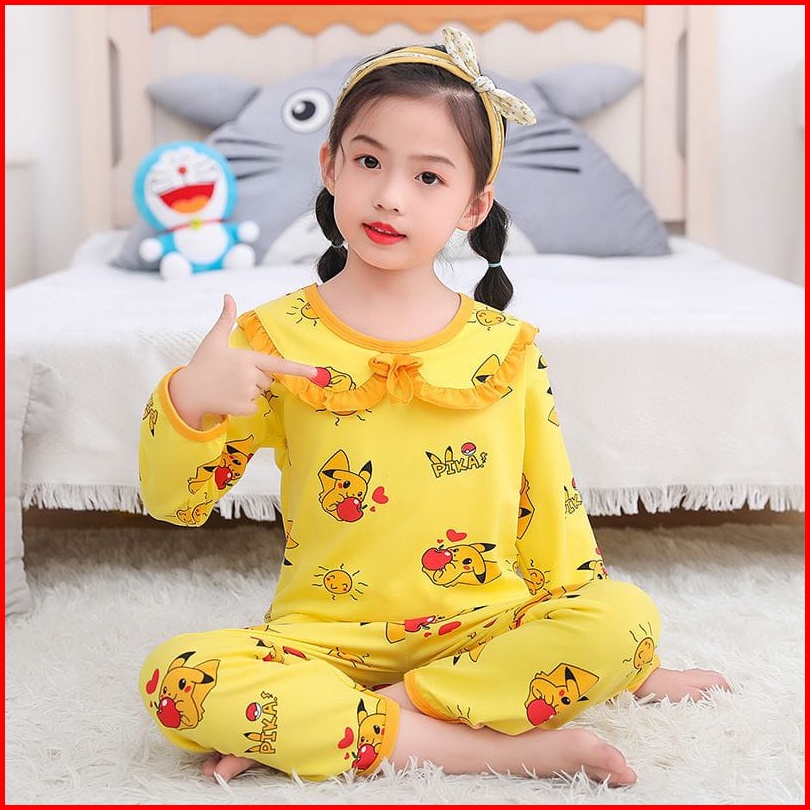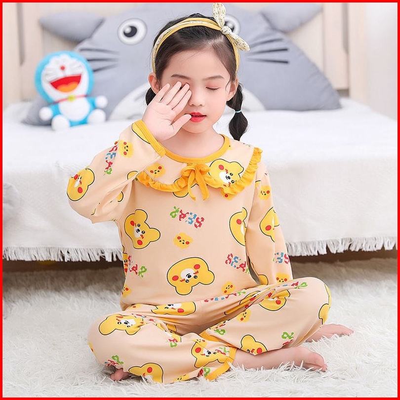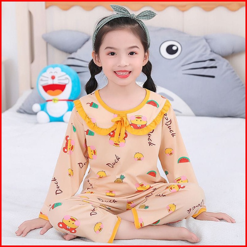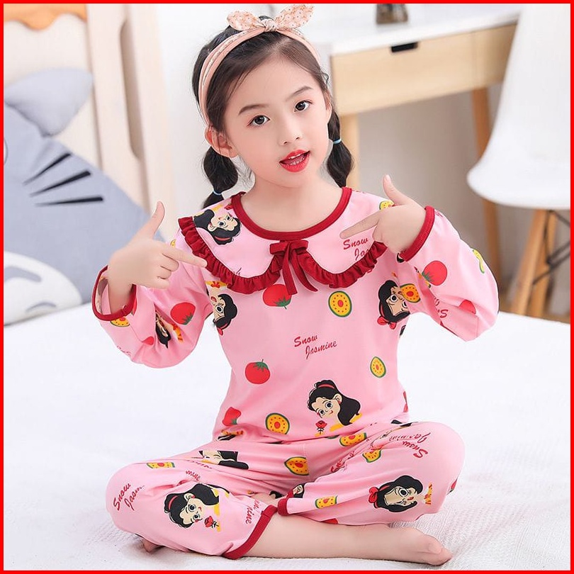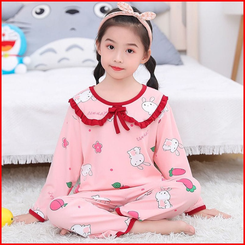 Da-dj Setelan Piyama Set Anak Perempuan Girl Cewek Lengan Panjang Renda Impor Baju Tidur