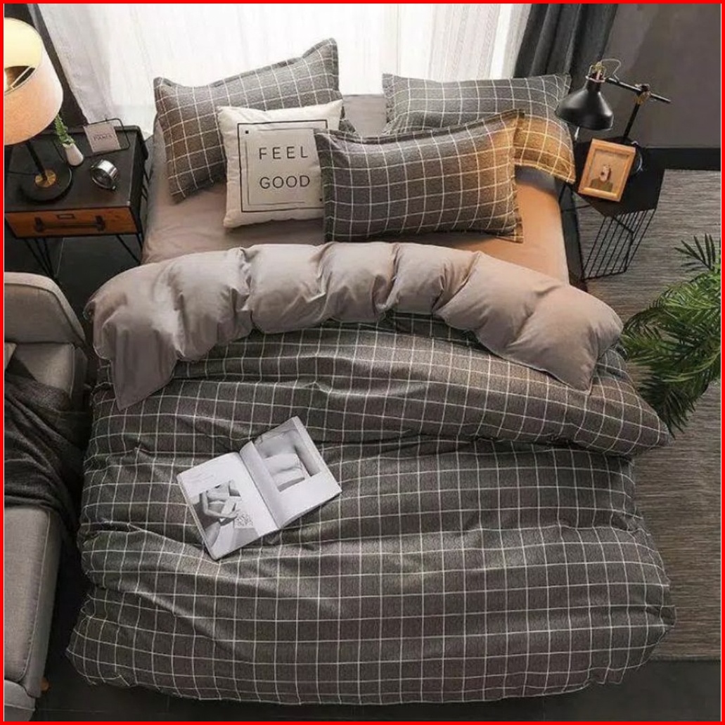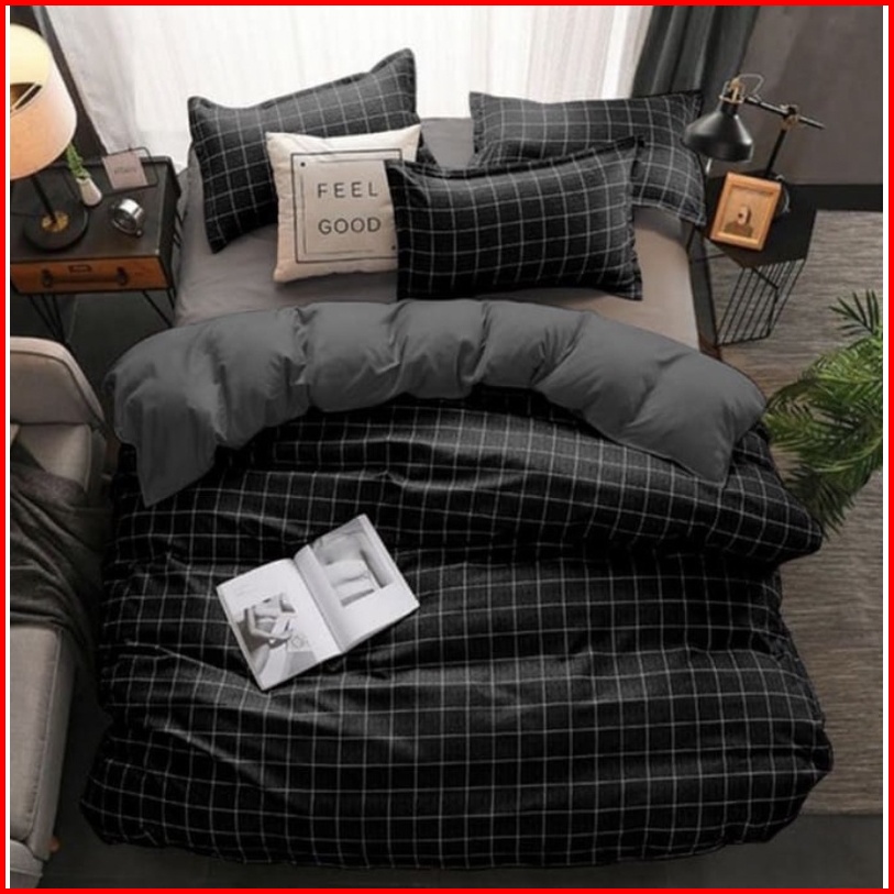 Sungjae Bedcover Bedcover Saja Motif Aesthetic Kotak-kotak Hitam Dan Abu 160 X 230 200 X 230