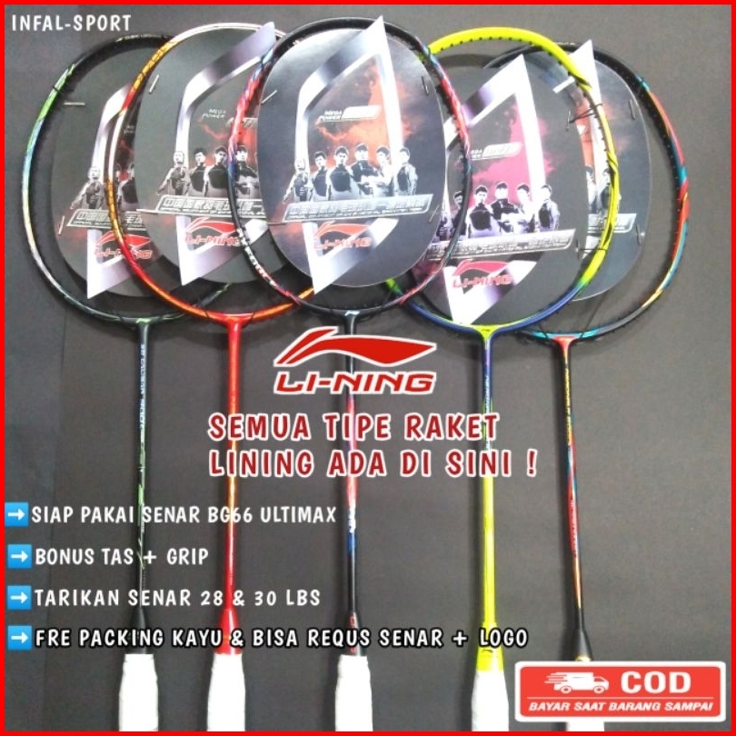 Raket Badminton Lining Tectonic 7 Aeronaut 9000 30 32lbs Bonus Tas Grip