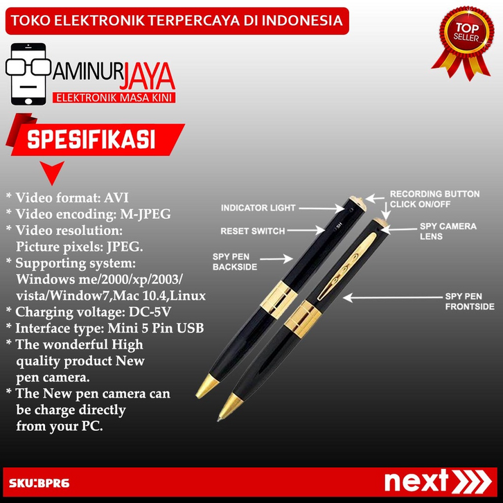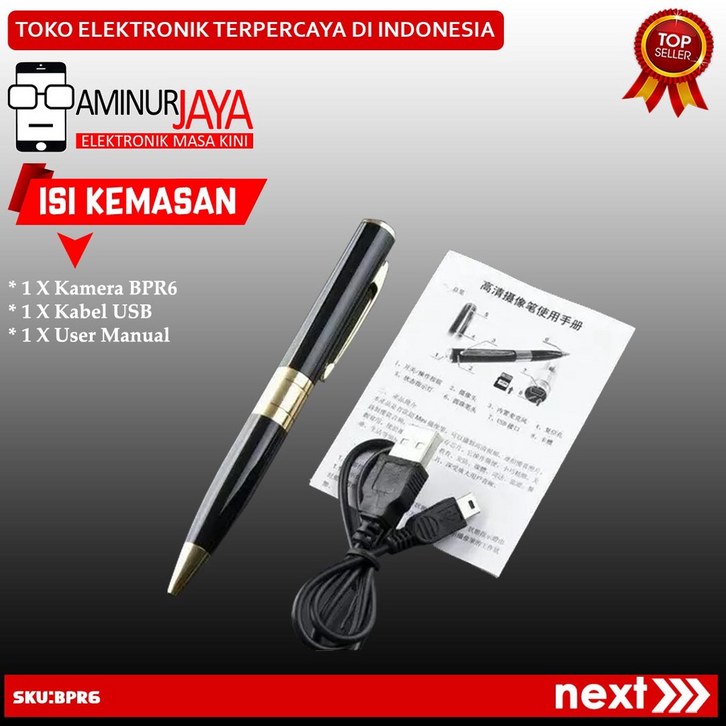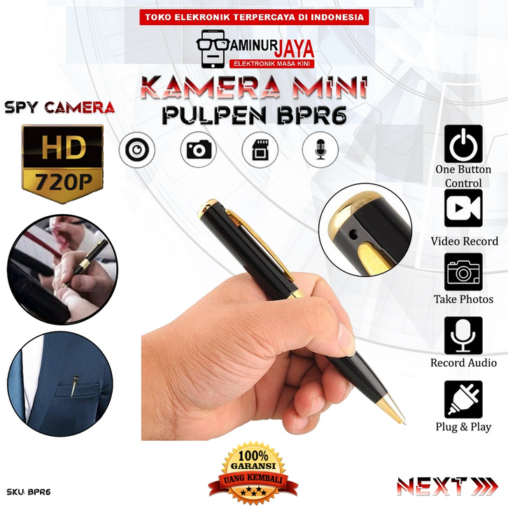 Kamera BPR6 Pulpen Spy Cam Camera Bolpoint Full HD 720P Spycam Pengintai Pengawas Mini Tersembunyi Model Pen Hidden Spy