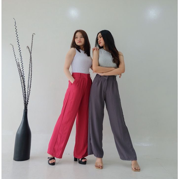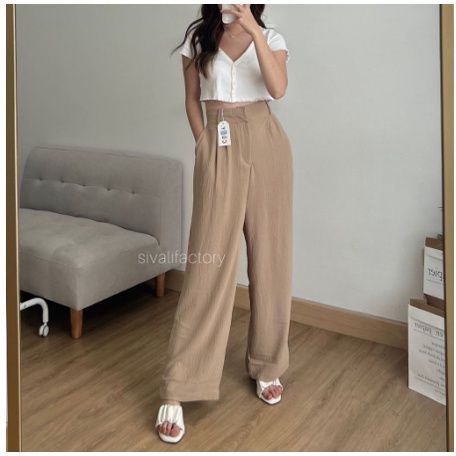 Celana Kulot Kantor Crinkle Highwaist Wanita Loose Cullote Pants terkini 2508