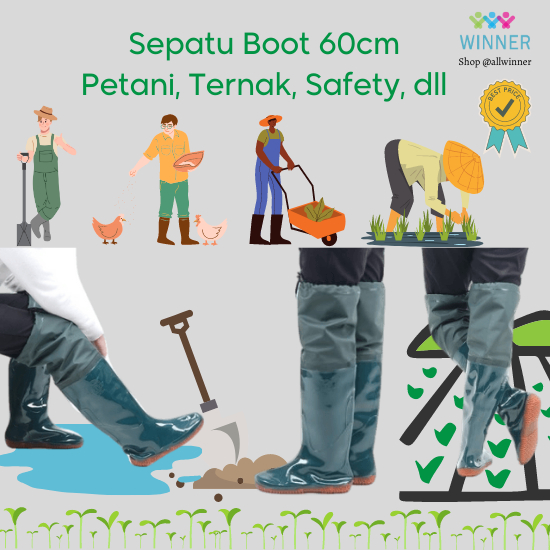 SEPATU BOOT KARET PETANI SAWAH PANJANG 60CM TERNAK MANCING HUJAN ANTI KEONG SEPATU BOOT RUBBER