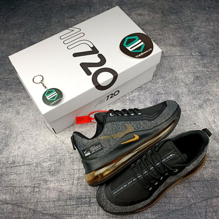 Sepatu Sneakers Olahraga Pria NKE Air Max 720 Shield Black Gold Oreo