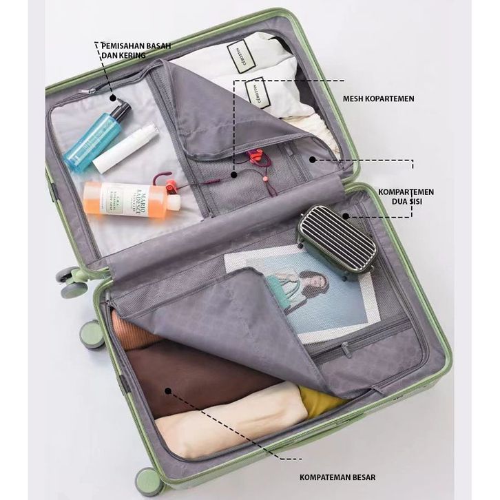 KOPER POLOSHARE 24 Inch Kabin Bagasi Size 18 20 24 28 Inch Desain Stand cup charger Usb