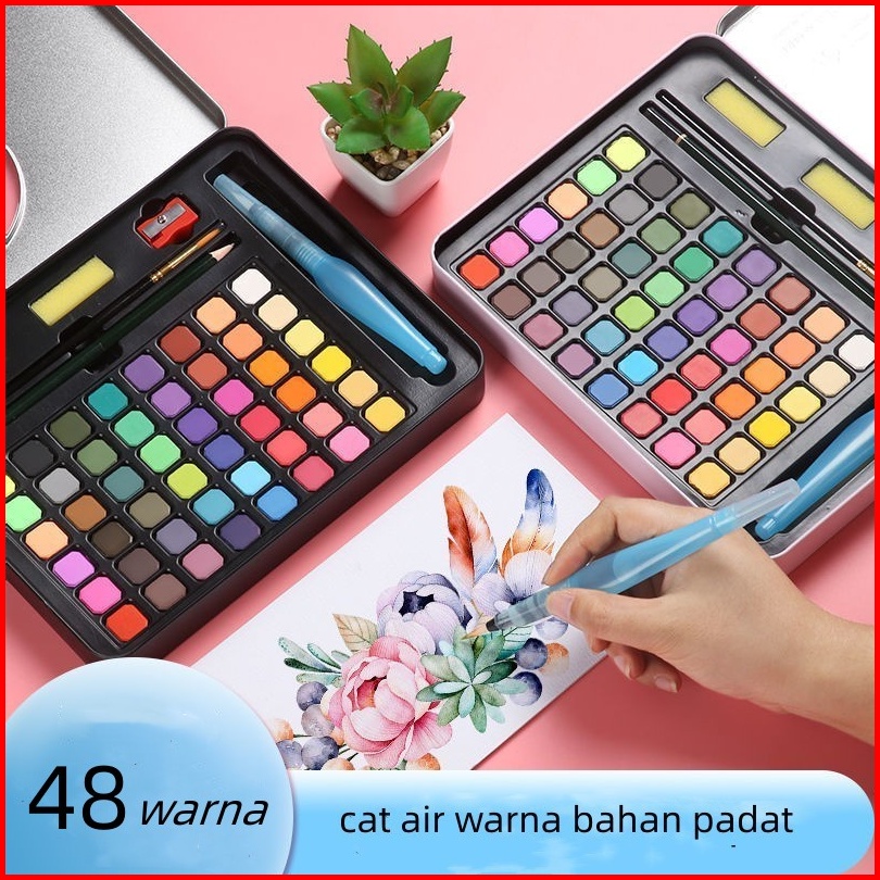 Cat Air Warna 36 Dan 48 Warna Alat Cat Air Warna Per Set Sudah Termasuk Kuas Dan Kertas Lukis
