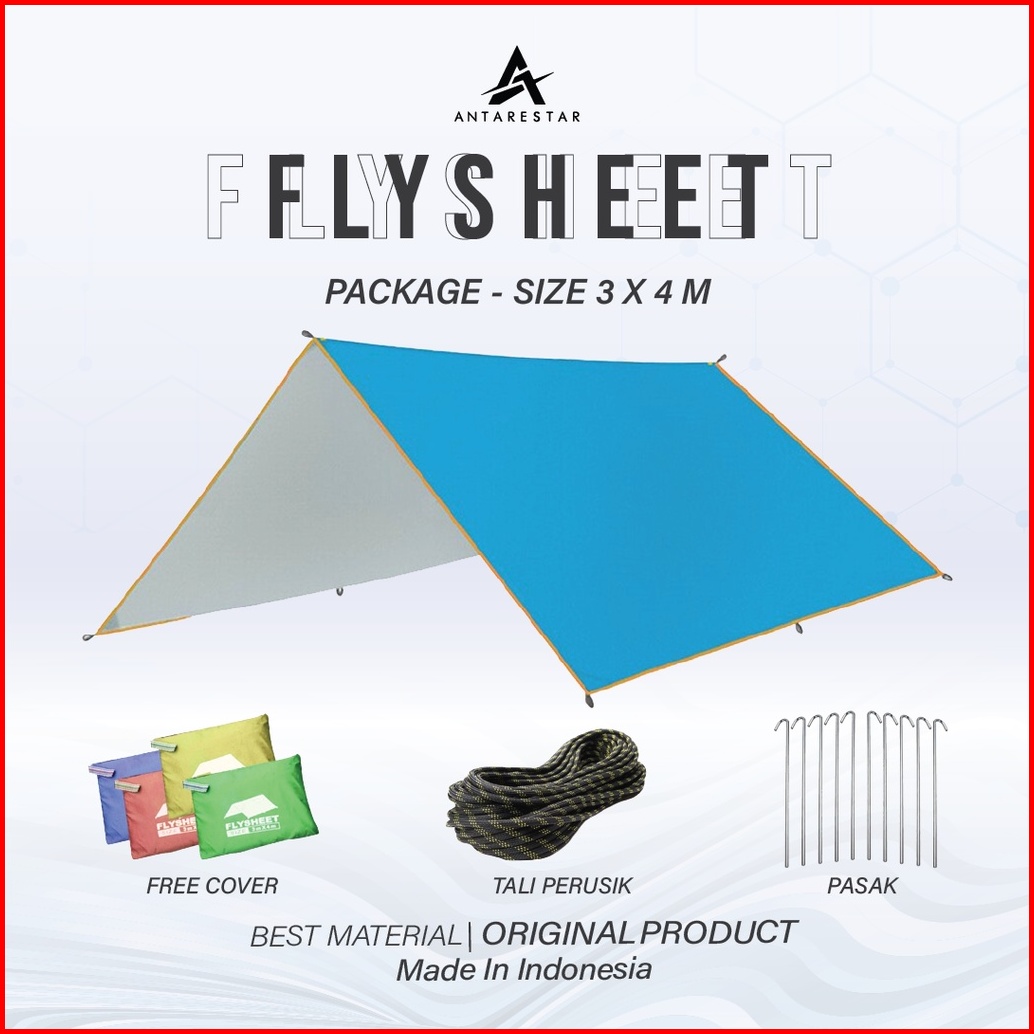 Antarestar - Paket Hemat Flysheet Waterproof 3x4 Plus Tali Perusik 20m Plus Pasak Tenda 12 Pcs Paket Alat Camping Playsi