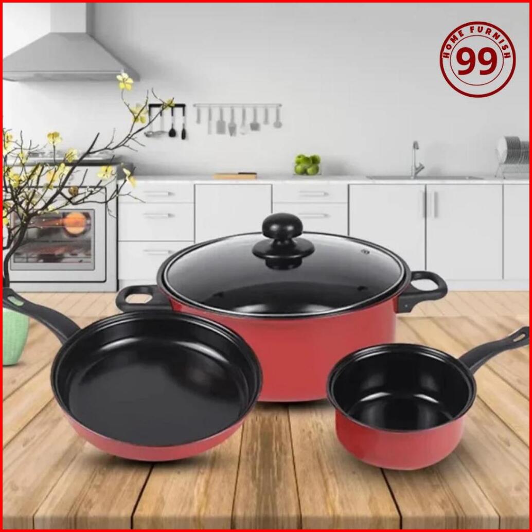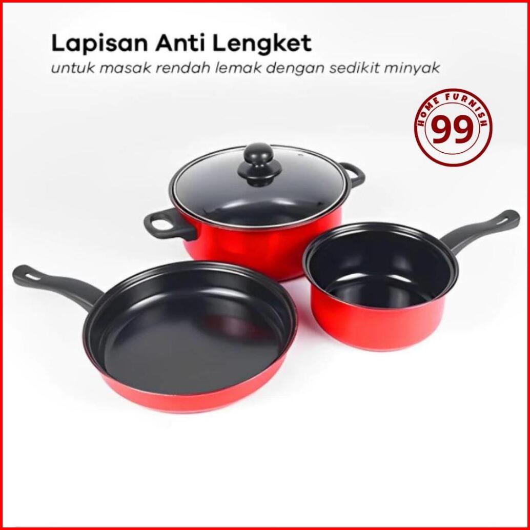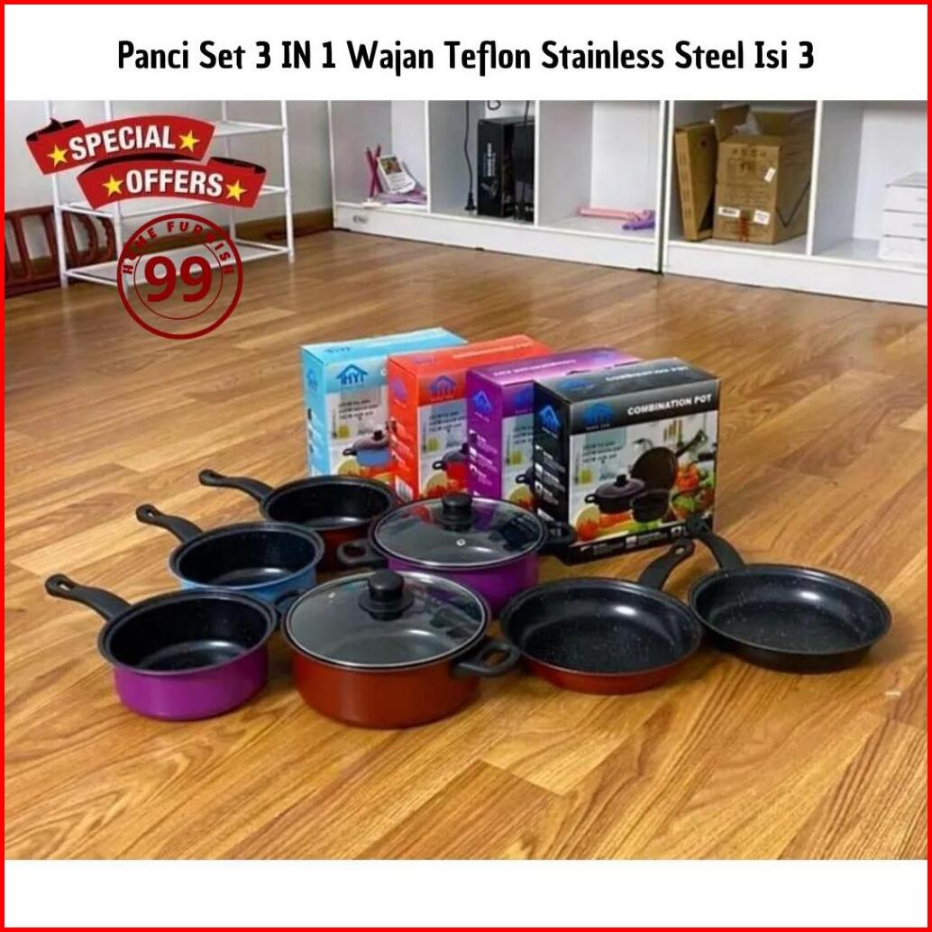 Home Furnish Panci Set 3 In 1 Wajan Teflon Stainless Steel Isi 3