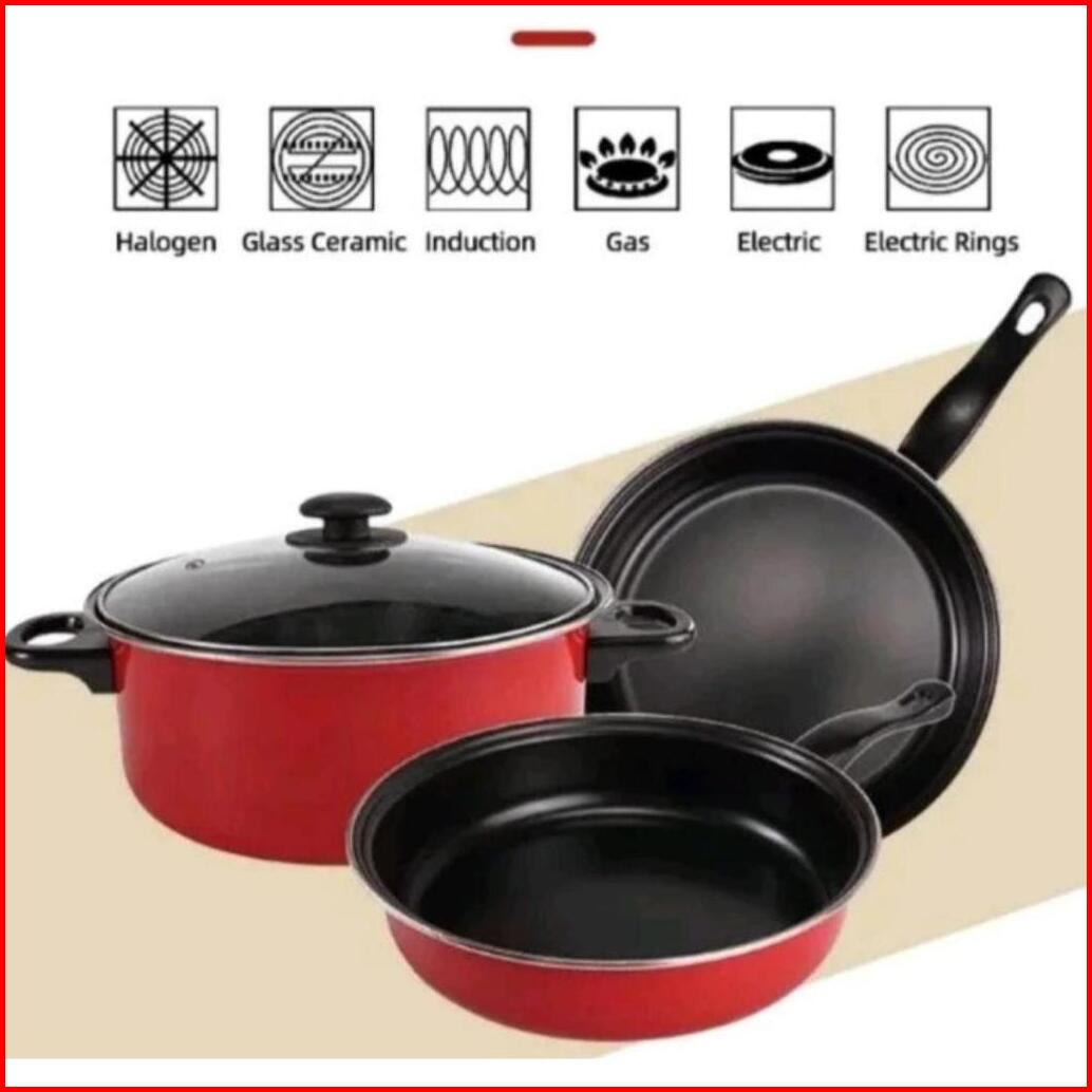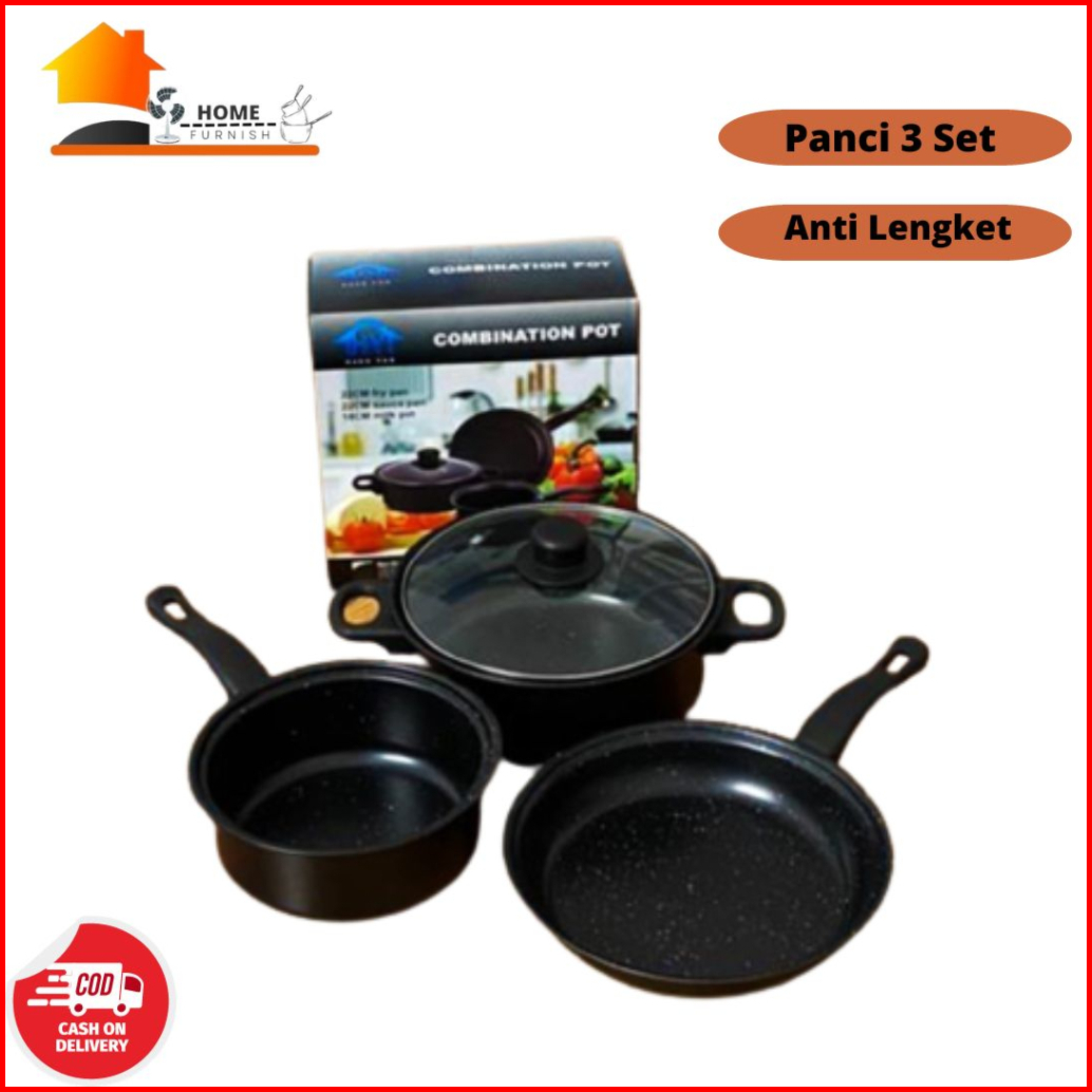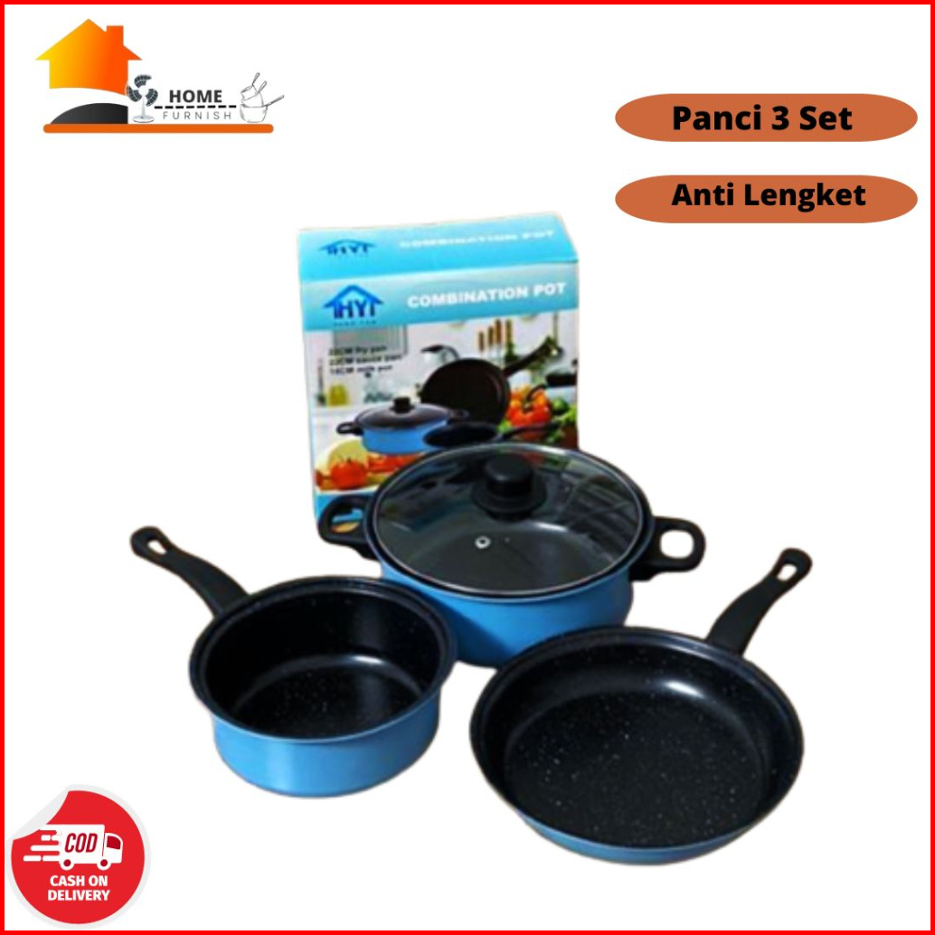 Home Furnish Panci Set 3 In 1 Wajan Teflon Stainless Steel Isi 3