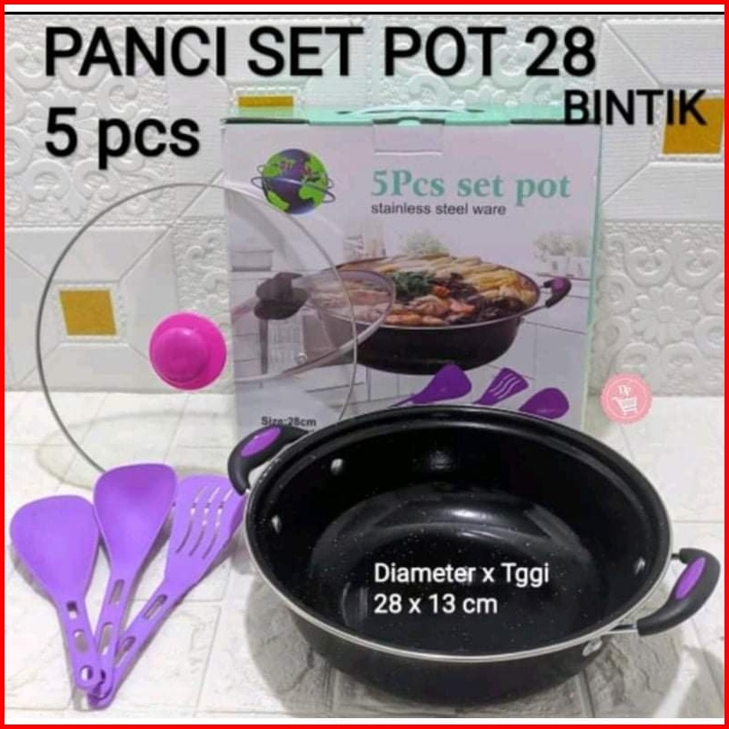 Panci Wajan Set Pot Tutup Kaca 28cm Free Spatula