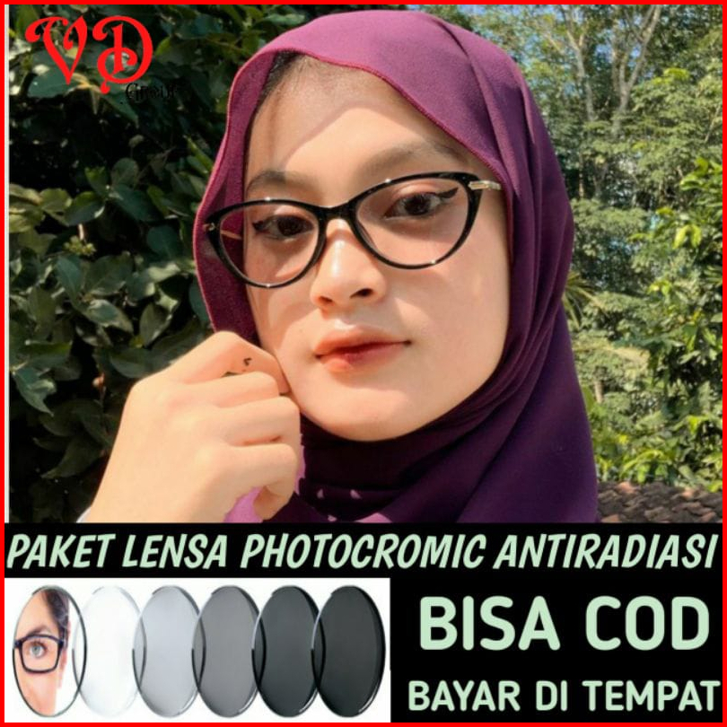 Frame Kacamata Cat Eye Photocromic Free Box Lap Lensa Anti Radiasi Komputer Anti Uv Kacamata Kacamata Cewek Photocromic