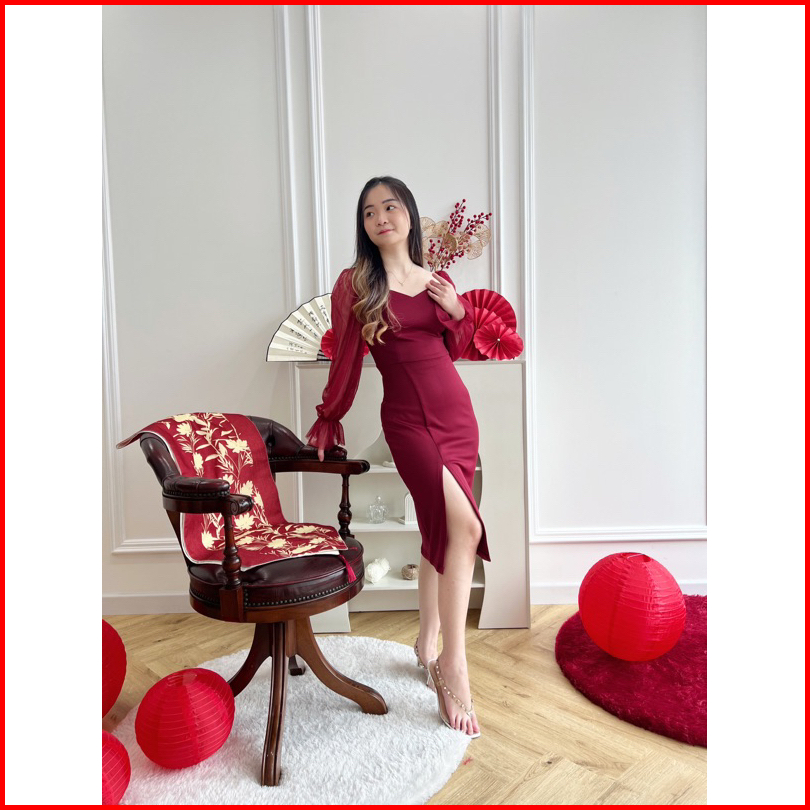 Elevenclothing - Edeline Bodycone Midi Dress Mix Tile Simple Polos Premium Ala Korea - Ecr 1113