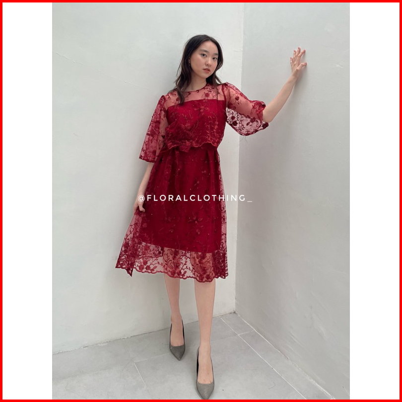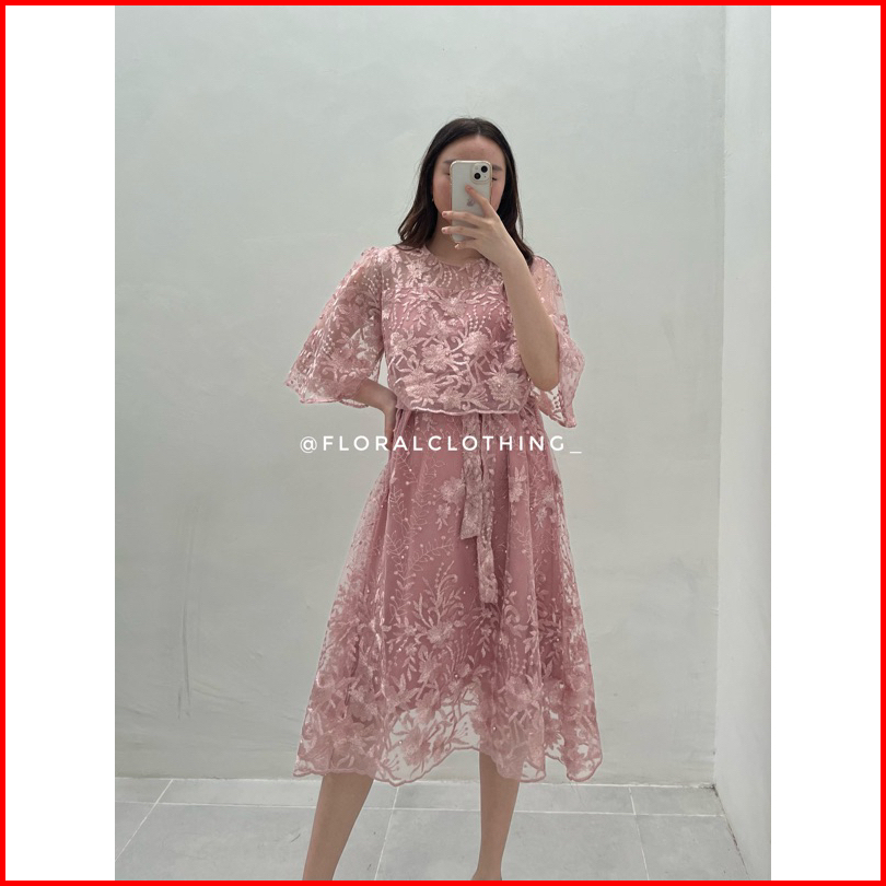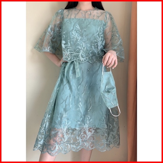 Restock Dress Wanita Kondangan Wanita Mewah Full Brukat Free Masker F90