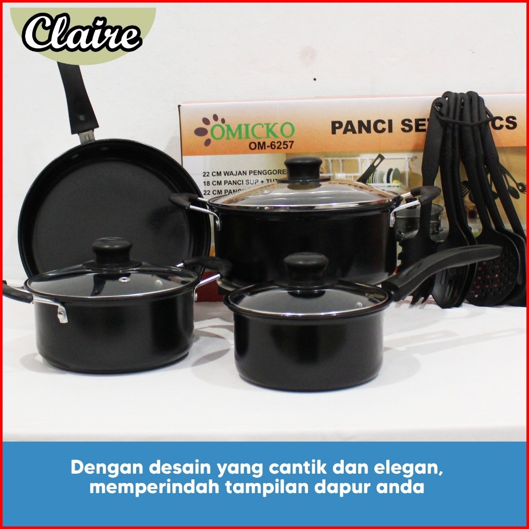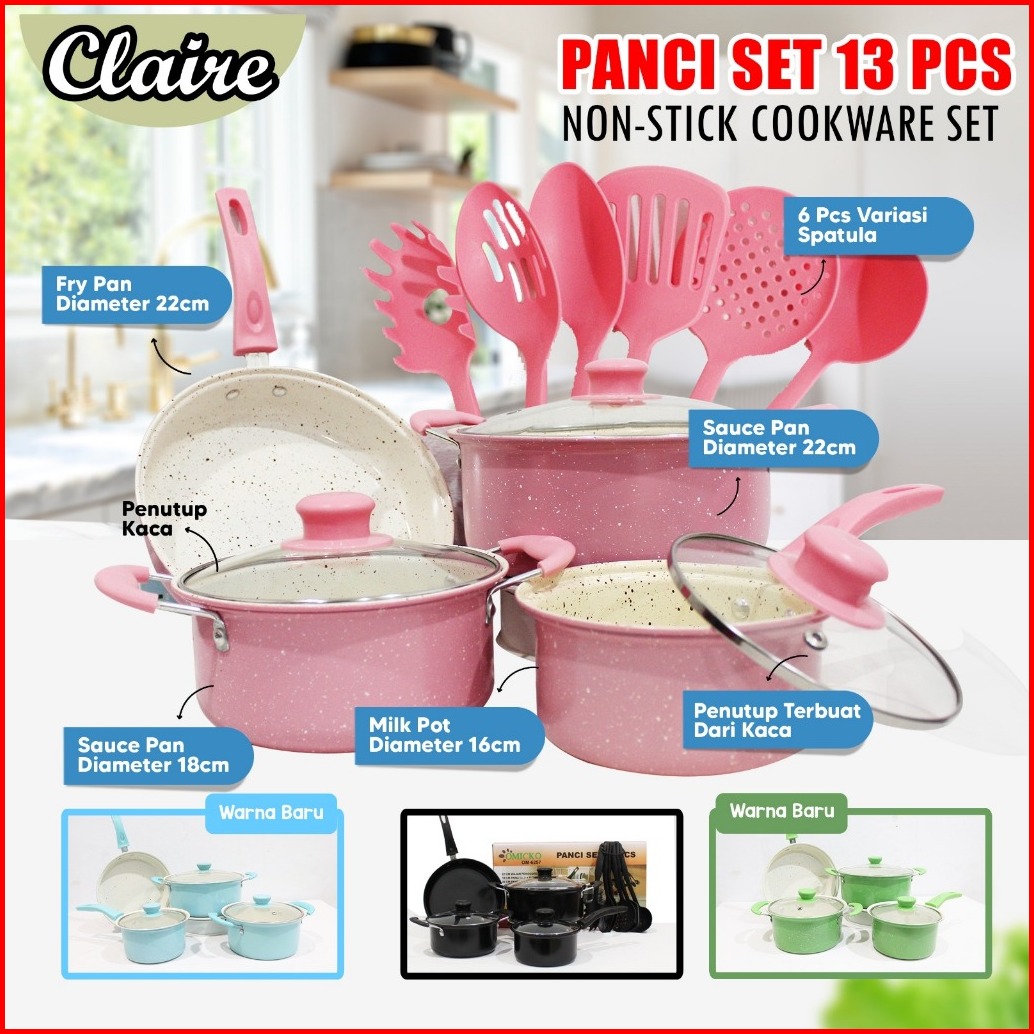 Panci Set 13 Pcs Anti Lengket Spatula 6 Pcs Penutup Kaca Cookware Set Non-stick